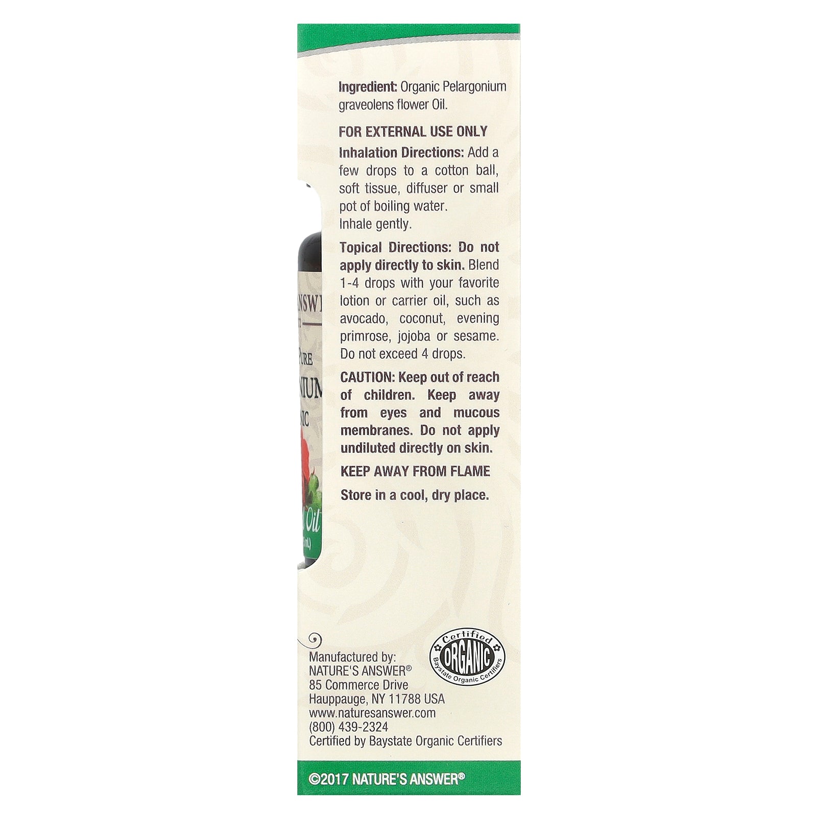 Nature's Answer, 100% Pure Organic Essential Oil, Geranium, 0.5 fl oz (15 ml)