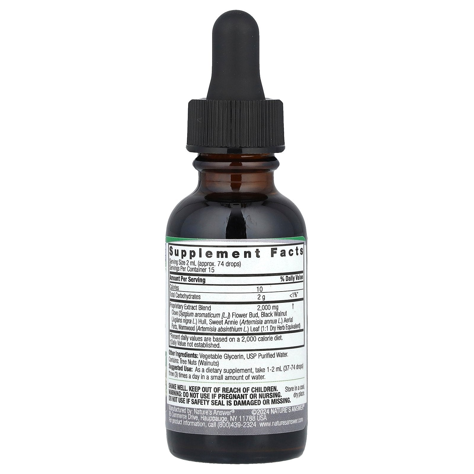 Black Walnut (Juglans Nigra) is a tree found in North America and it’s harvested in the fall. The green hull surrounding the nut is high in tannins and iodine. Wormwood (Artemisia absinthium) is a perennial shrub-like plant of the aster family. Active constituents found in wormwood include thujone, silica, tannins, flavonoids, and inulin. It also contains absinthin and anabsinthine. Nature’s Answer® Black Walnut and Wormwood Complex bring you the traditional benefits of this herbal combination to promote your overall well-being.