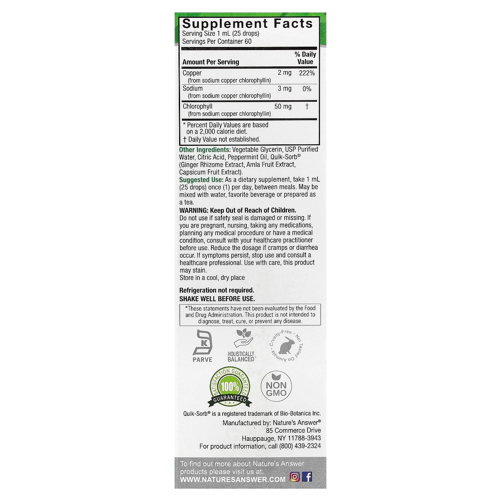| Copper (from sodium copper chlorophyllin) | 2 mg | 222% |