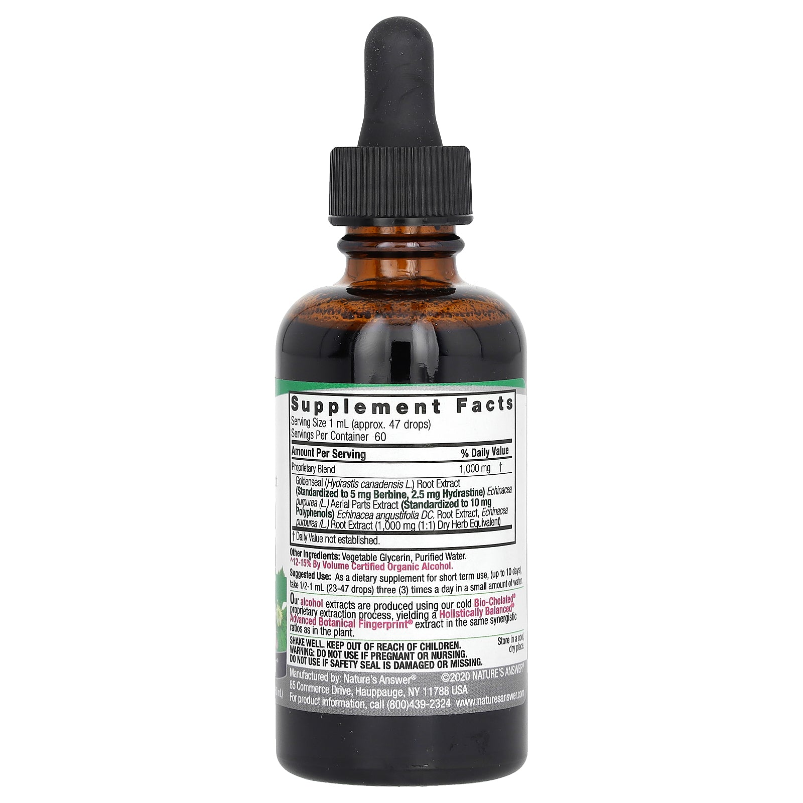 Proprietary Blend Goldenseal (Hydrastis canadensis L.) Root Extract Standardized to 5 mg Berbine, 2.5 mg Hydrastine) Echinacea purpurea (L.) Aerial Parts Extract (Standardized to 10 mg Polyphenols) Echinacea angustifolia DC. Root Extract, Echinacea purpurea (L.) Root Extract (1,000 mg (1:1) Dry Herb Equivalent) |