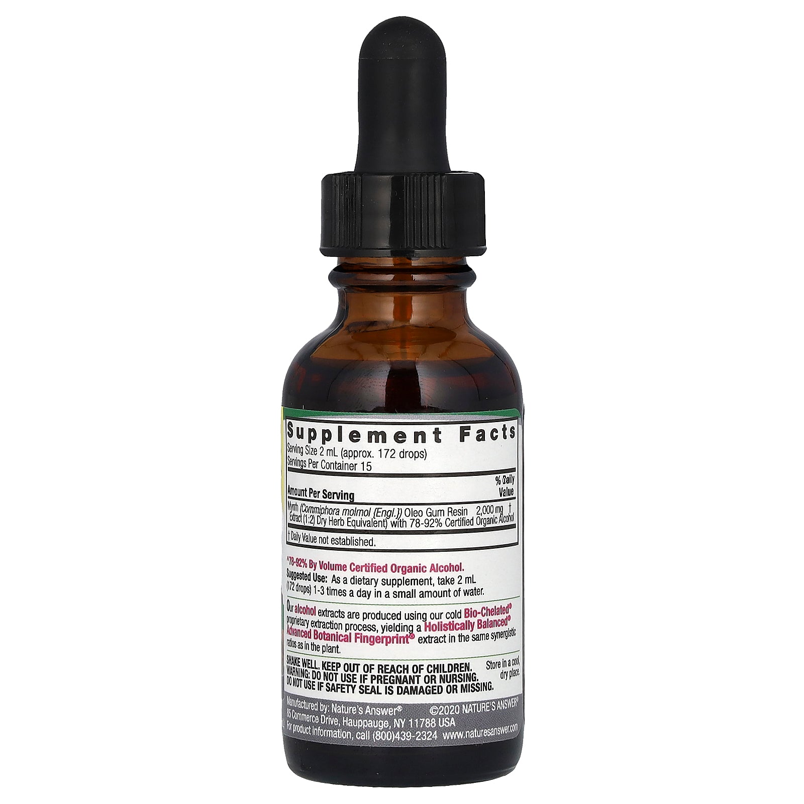 | Myrrh (Commiphora molmol {Engl.}) Oleo-Gum-Resin Extract (1:2) Dry Herb Equivalent) with 78-92% Certified Organic Alcohol | 2,000 mg | † |