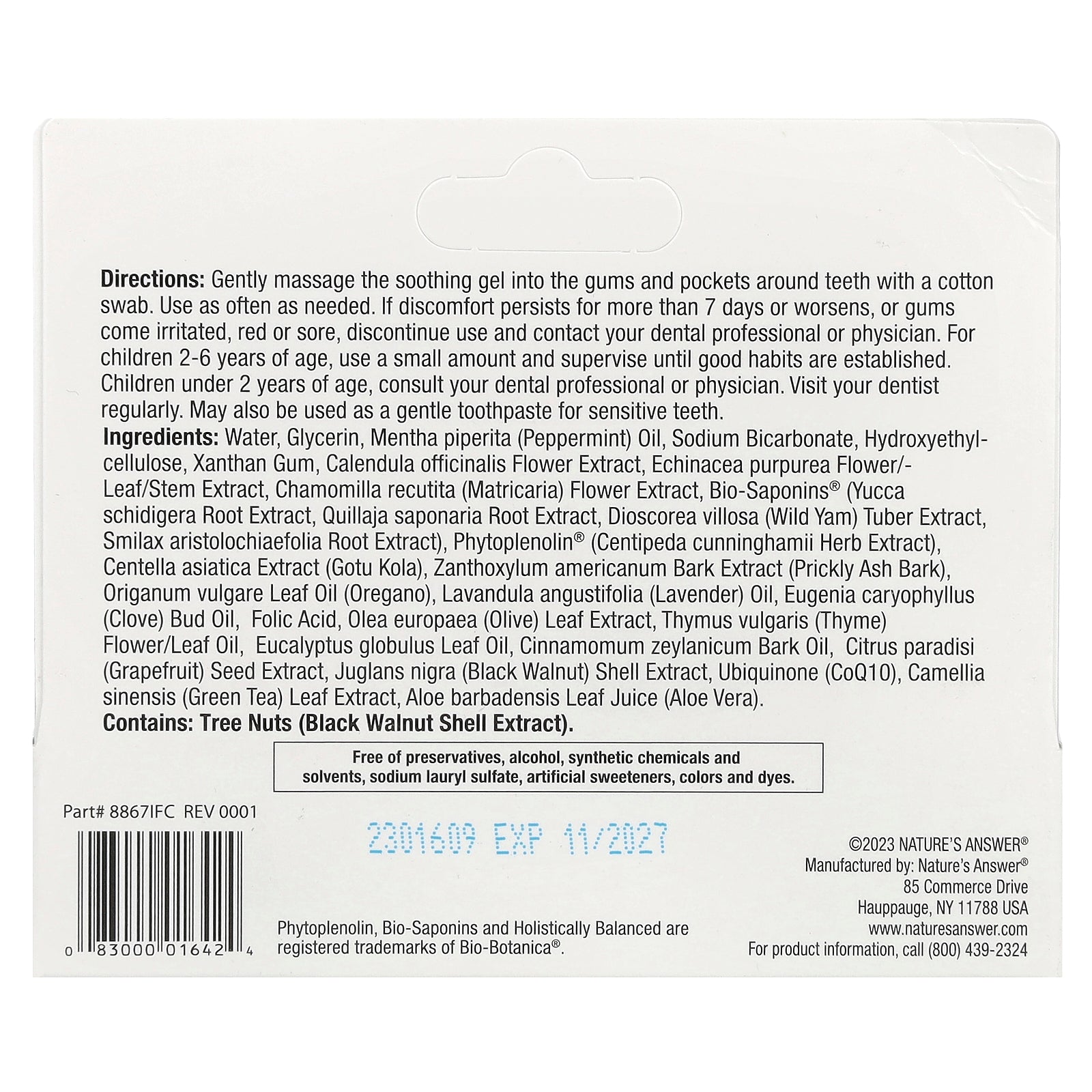 Gently massage the soothing gel into the gums and pockets around teeth with a cotton swab. Use as often as needed. If discomfort persists for more than 7 days or worsens, or gums come irritated, red or sore, discontinue use and contact your dental professional or physician. For children 2-6 years of age, use a small amount and supervise until good habits are established. Children under 2 years of age, consult your dental professional or physician. Visit your dentist regularly. May also be used as a gentle toothpaste for sensitive teeth.