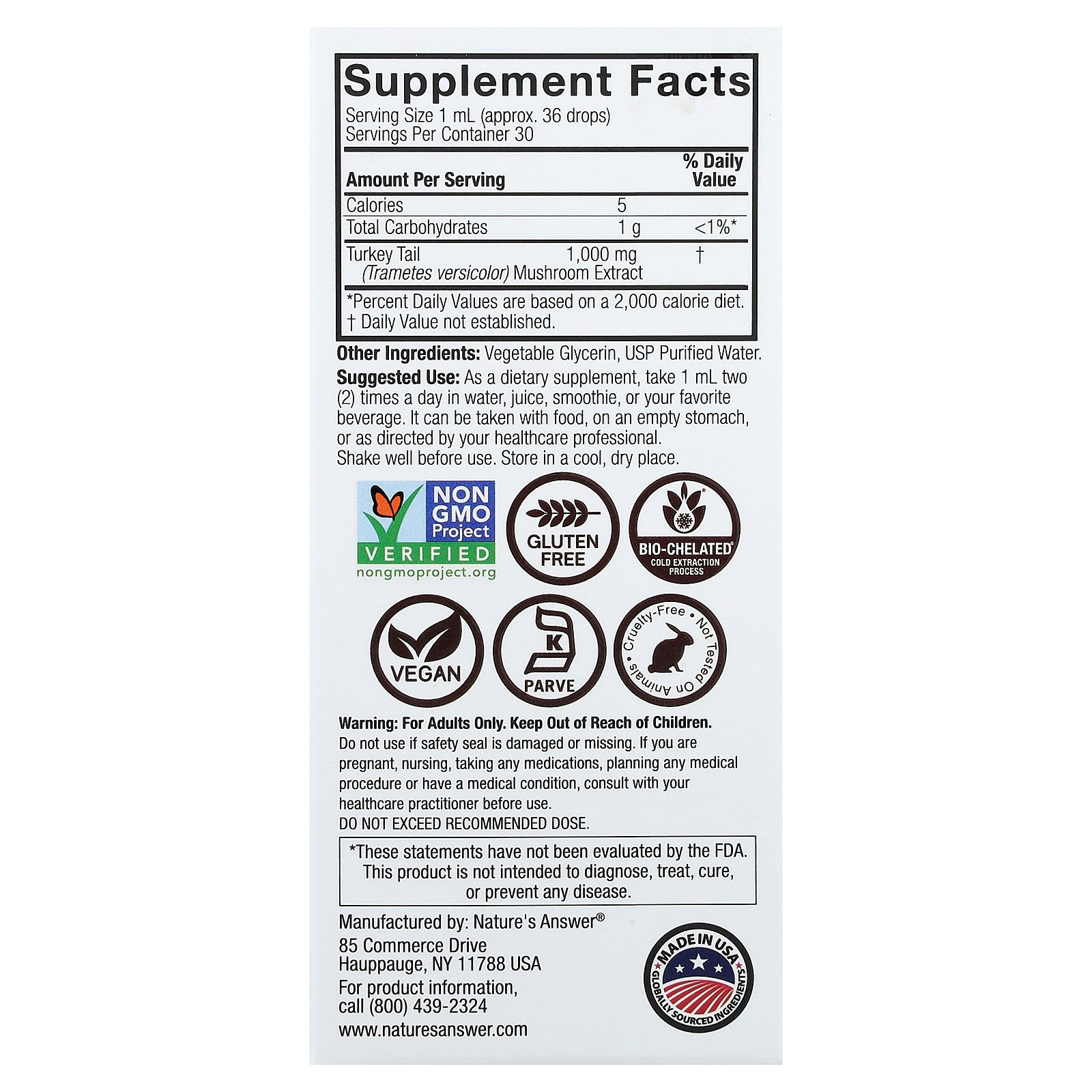 - 1:1 True Turkey Tail Mushroom Extract - delivering 1,000 mg of premium Turkey Tail per serving.