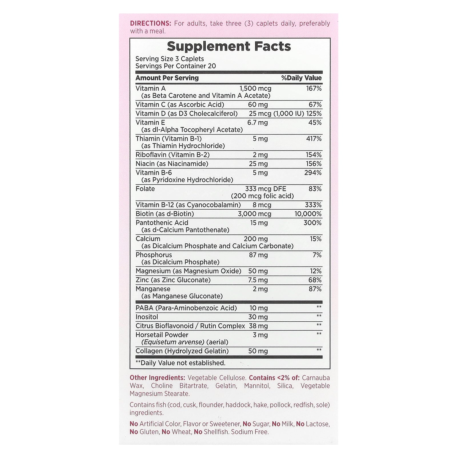 | Biotin (as d-Biotin) | 3,000 mcg | 10,000% |