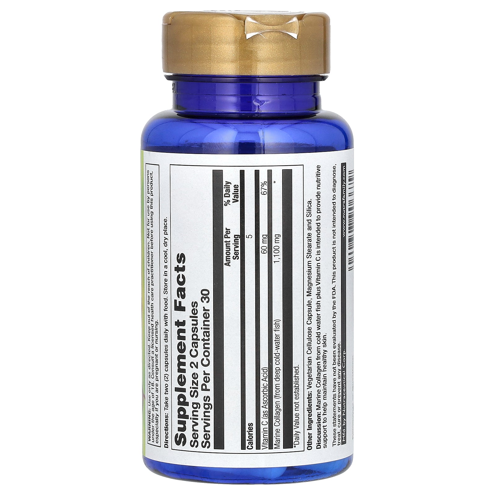 Marine Collagen from cold water fish plus Vitamin C is intended to provide nutritive support to help maintain healthy skin.