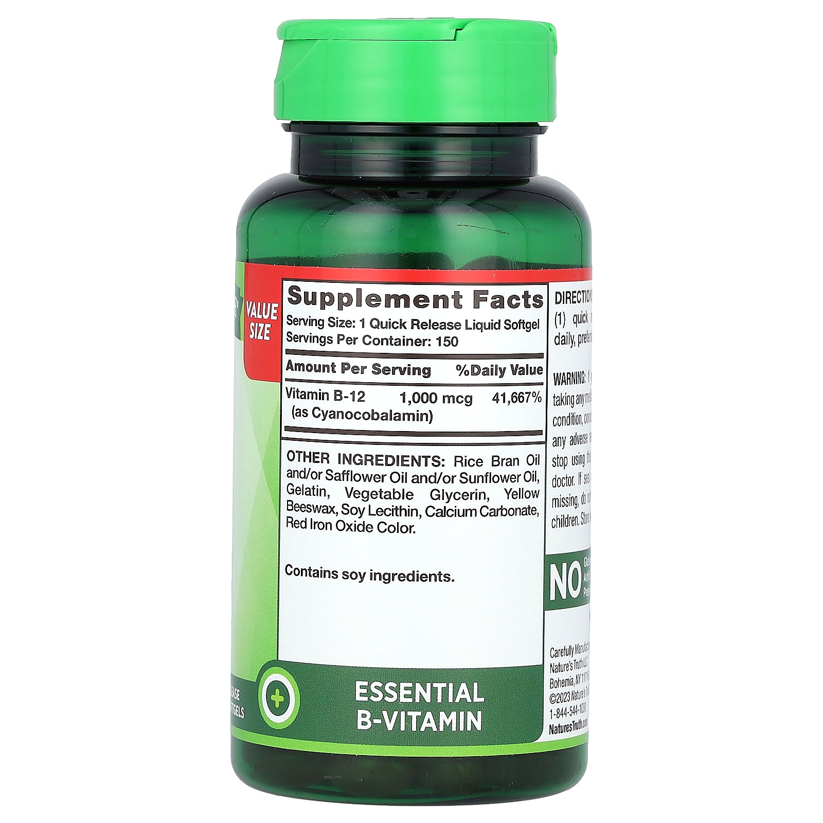 Receive your daily dose of this essential B-Vitamin with Nature’s Truth B-12 quick release liquid softgels. Each serving delivers 1,000 mcg of Vitamin B-12 and satisfies the daily recommended amount of this important vitamin.
