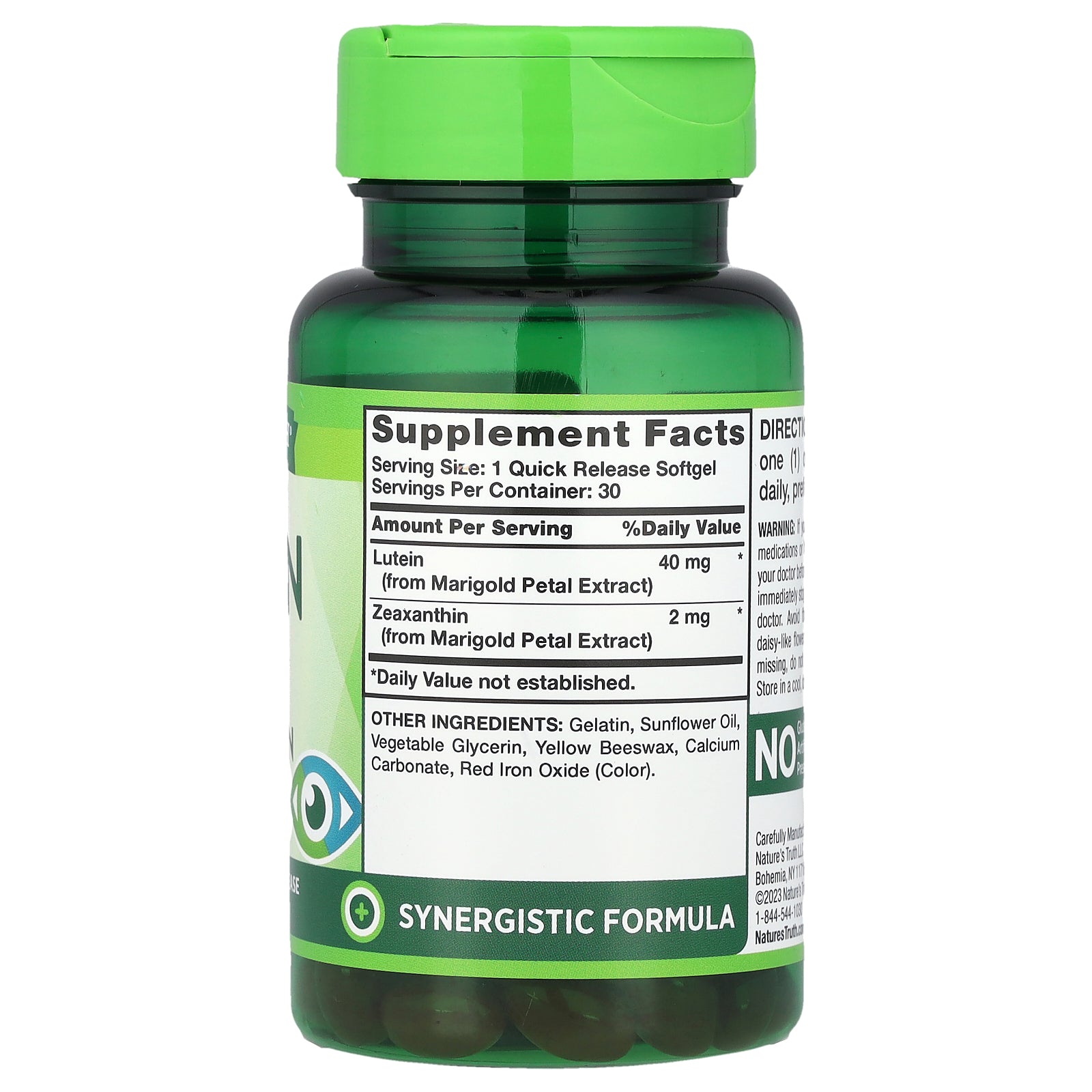 Each serving of our Lutein softgels delivers 40 mg of Lutein and 2 mg of Zeaxanthin, both derived from Marigold Petal Extract. Zeaxanthin is another type of carotenoid that acts in tandem with Lutein to provide reliable support. Just one quick release softgel per day of this synergistic formula is all you need.