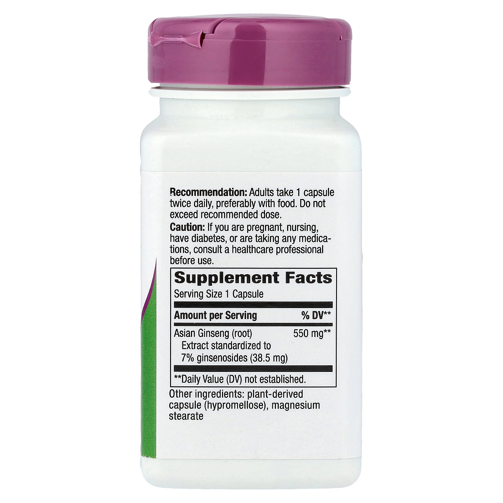 - Asian ginseng root extract standardized to 7% ginsenosides (38.5 mg per serving)