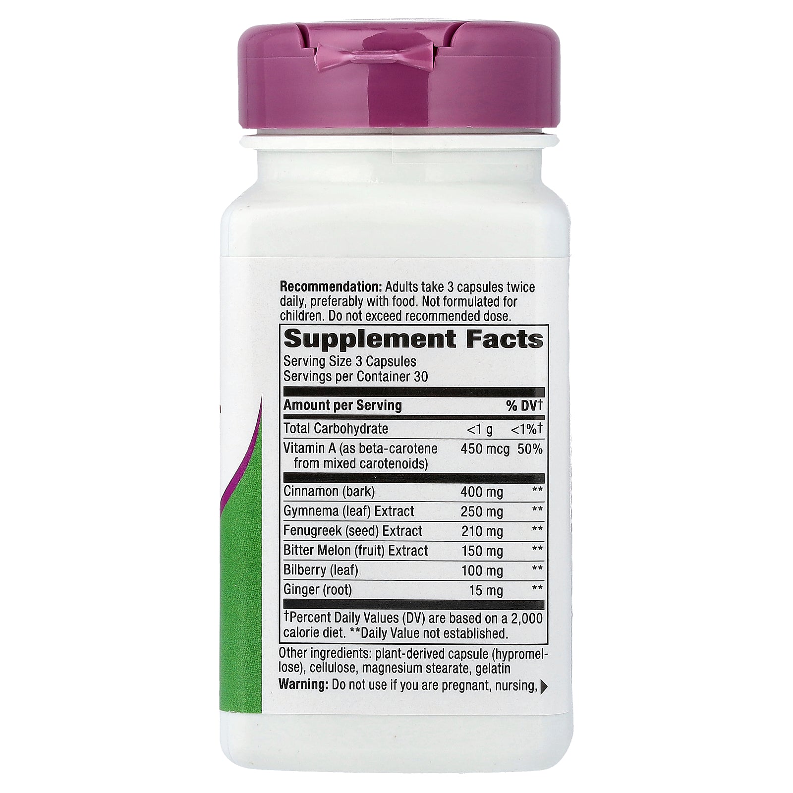 - With cinnamon, gymnema extract, fenugreek extract, bitter melon extract, bilberry, and ginger