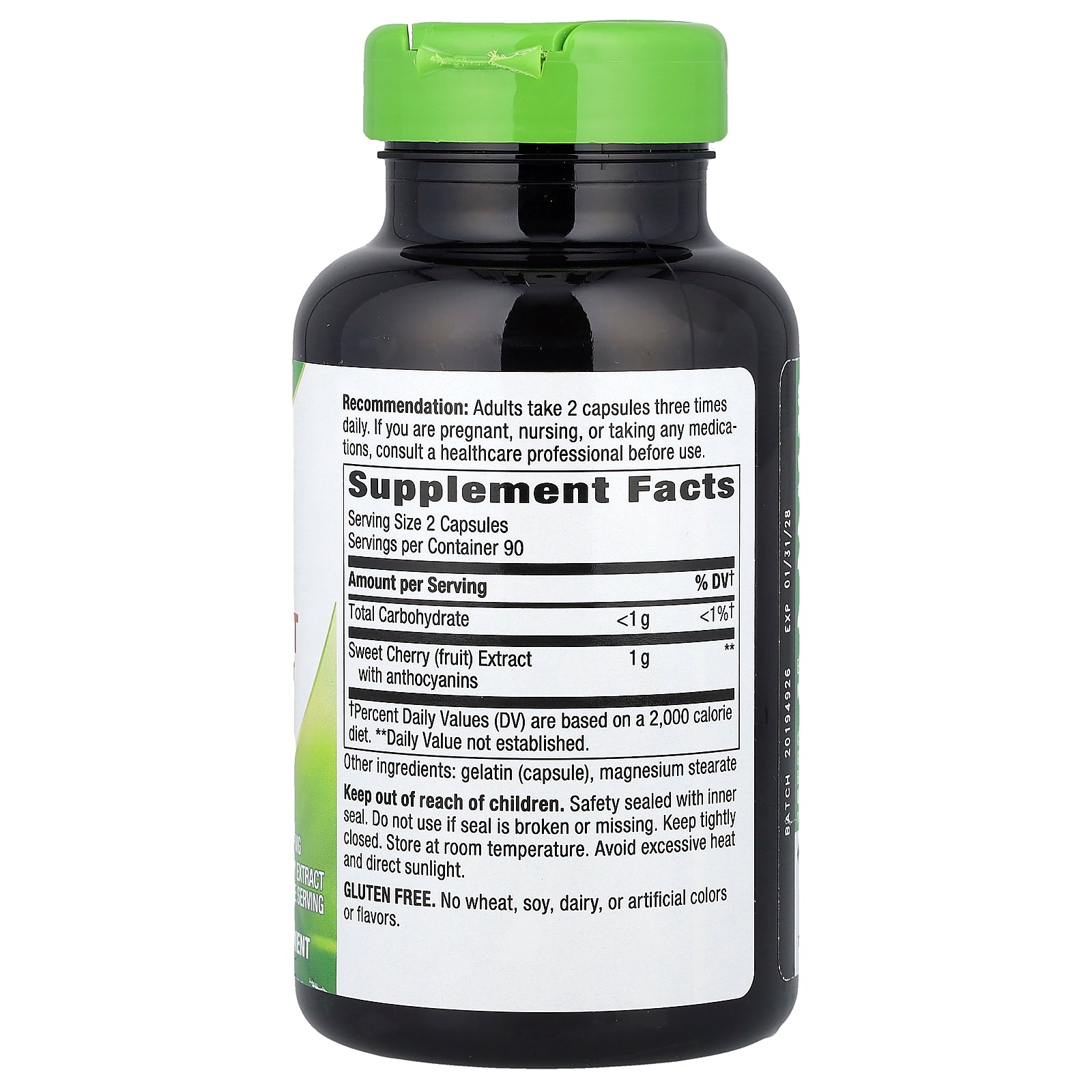 - With 1,000 mg sweet cherry fruit extract per 2-capsule serving