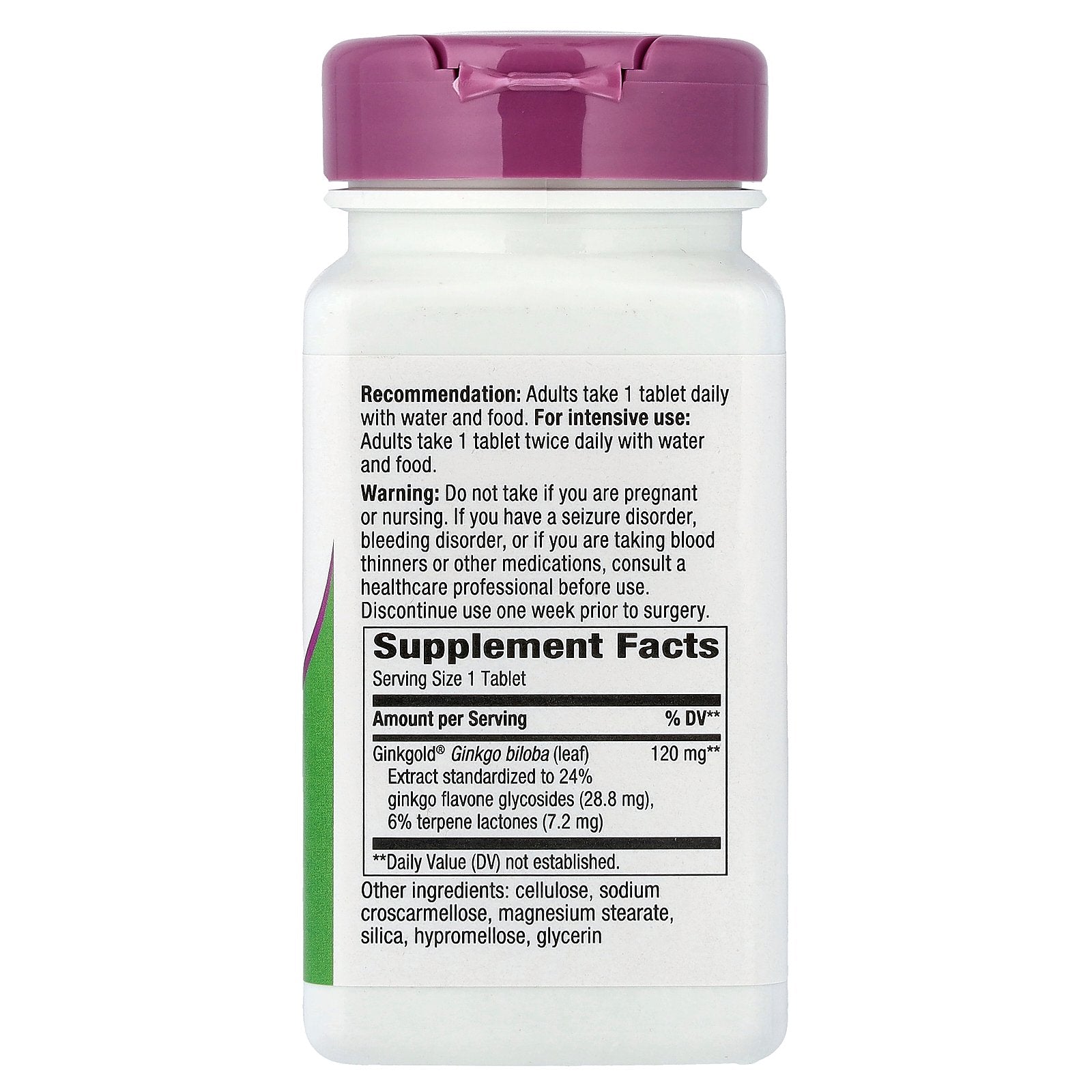 | Ginkgold® Ginkgo biloba (leaf) Extract standardized to 24% ginkgo flavone glycosides (28.8 mg), 6% terpene lactones (7.2 mg) | 120 mg | ** |