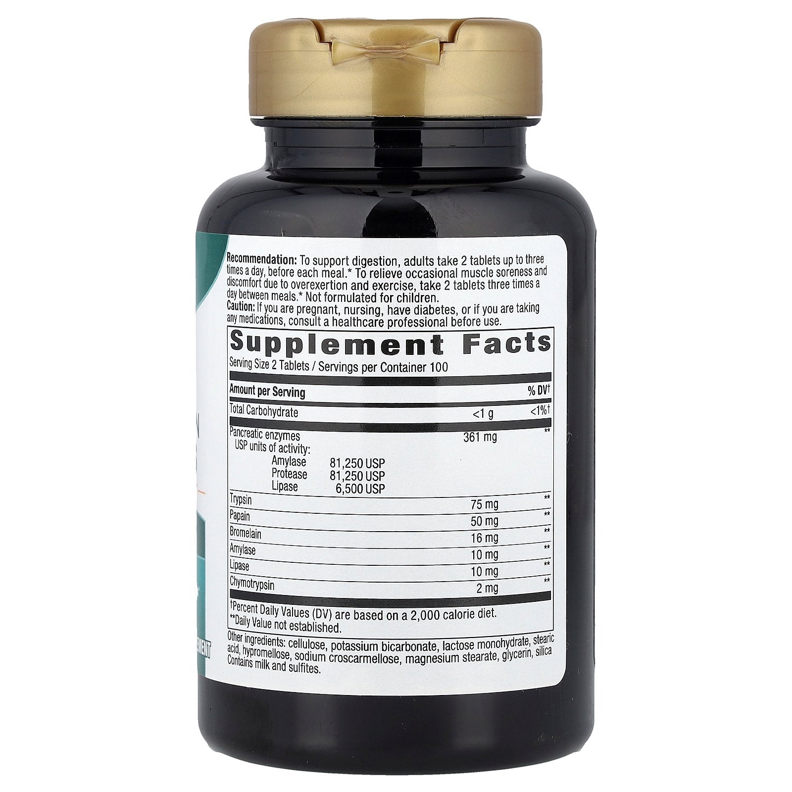 To support digestion, adults take 2 tablets up to three times a day, before each meal*. To relieve occasional muscle soreness and discomfort due to overexertion and exercise, take 2 tablets three times a day between meals .