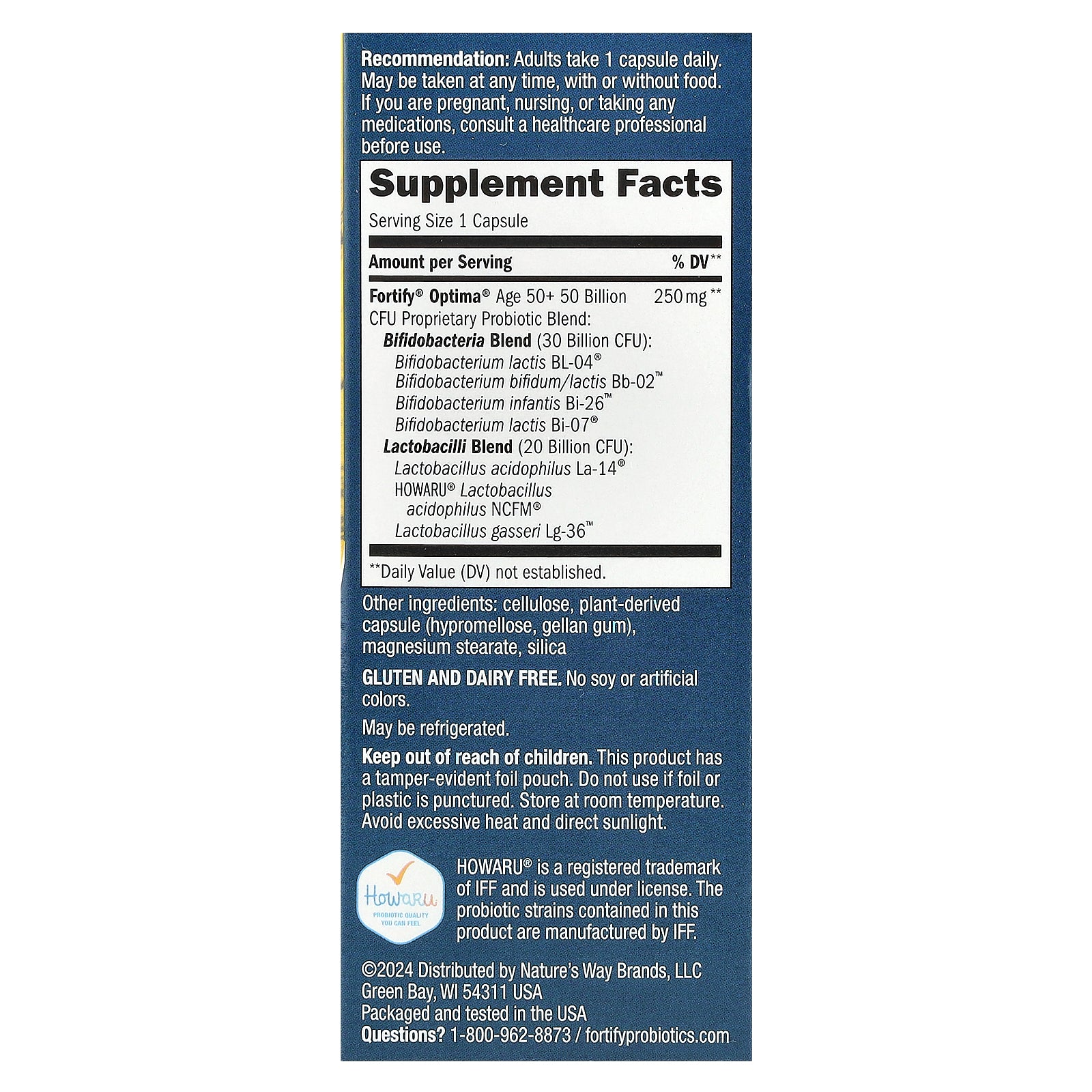 | Fortify™ Optima® Age 50+ 50 Billion CFU Proprietary Probiotic Blend: | 250 mg | ** |