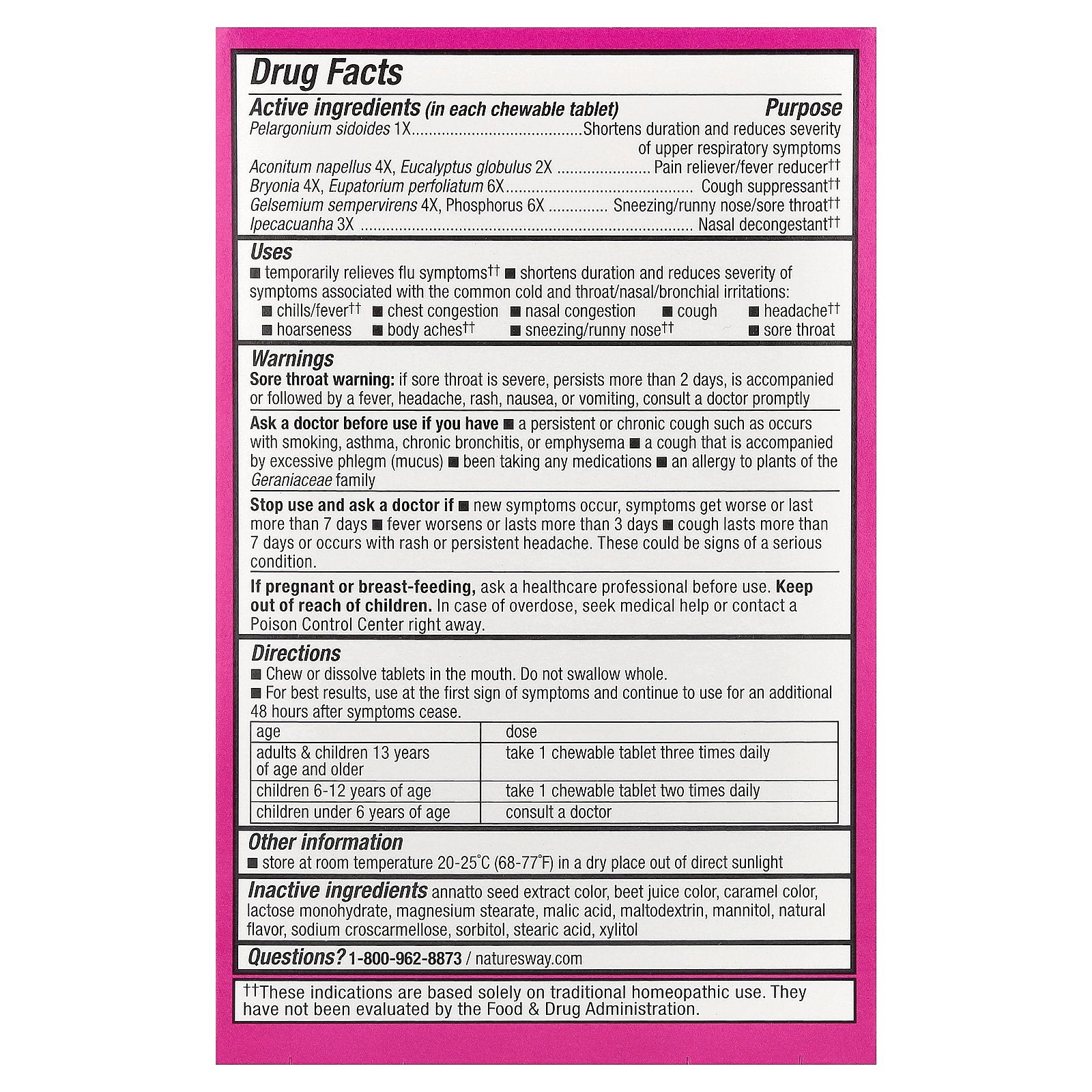 Reduces fever, body aches, chills, runny nose, cough, congestion, sore throat.