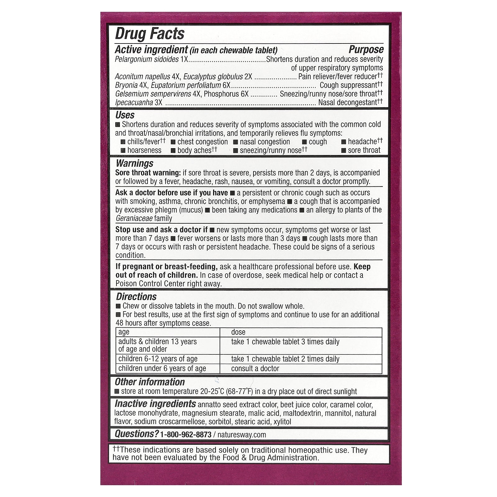 Uses: Shortens duration and reduces severity of symptoms associated with the common cold and throat/nasal/bronchial irritations, and temporary relieves flu symptoms: