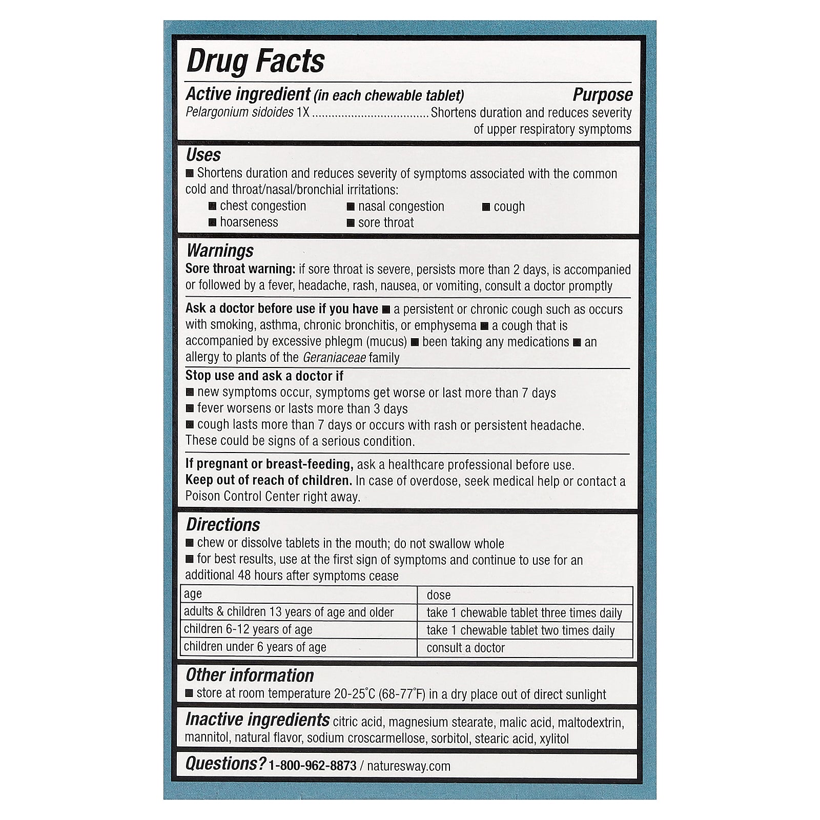 - Multi-symptom cold relief formula with clinically proven Pelargonium sidoides 1X