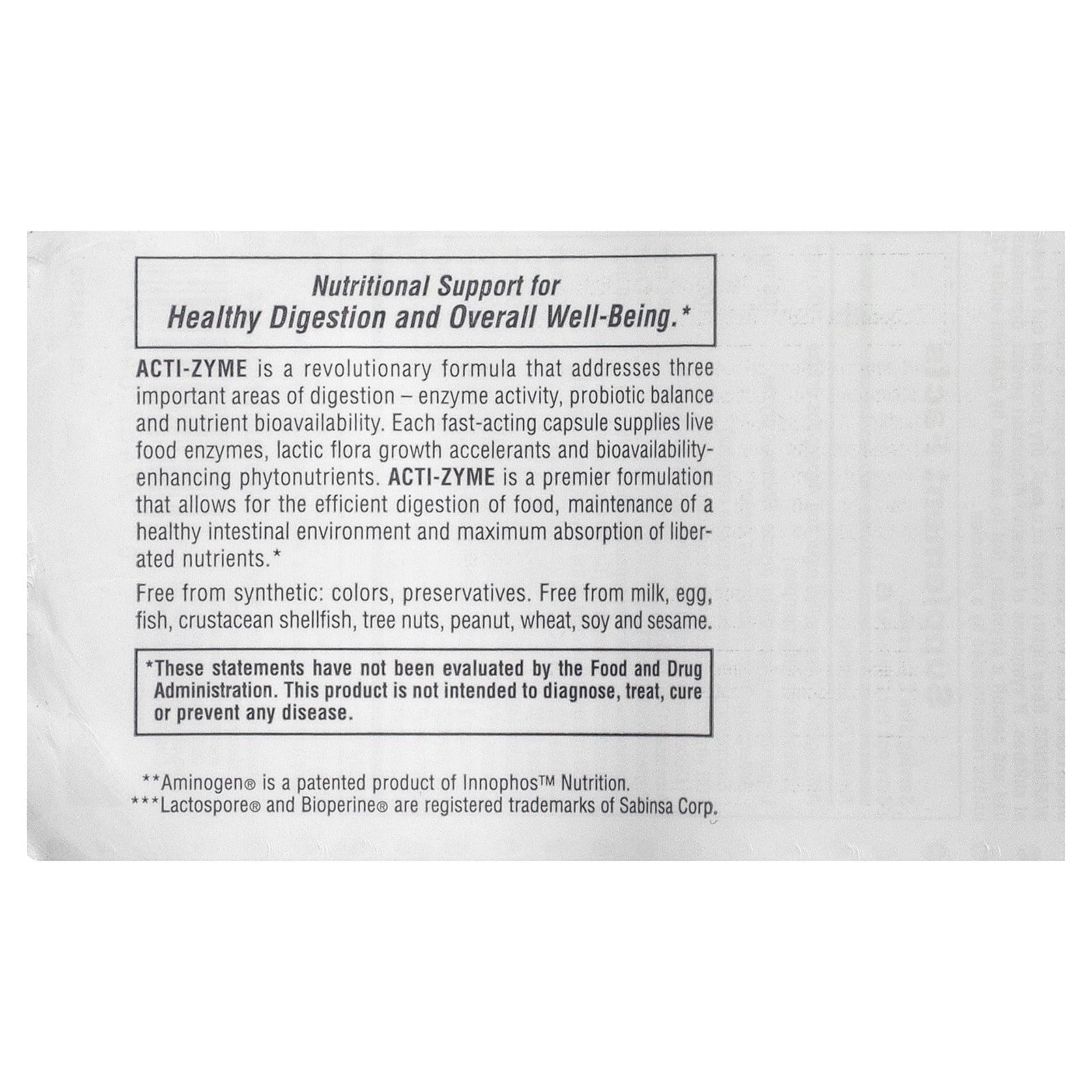 ACTI-ZYME is a revolutionary formula that addresses three important areas of digestion - enzyme activity, probiotic balance and nutrient bioavailability. Each fast-acting capsule supplies live food enzymes, lactic flora growth accelerants and bioavailability- enhancing phytonutrients. ACTI-ZYME is a premier formulation that allows for the efficient digestion of food, maintenance of a healthy intestinal environment and maximum absorption of liberated nutrients.