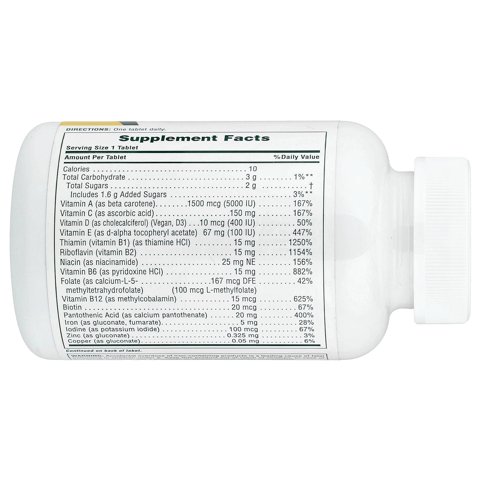 | Folate (as calcium-L-5-methyltetrahydrofolate) | 167 mcg DFE (100 mcg L-methylfolate) | 42% |