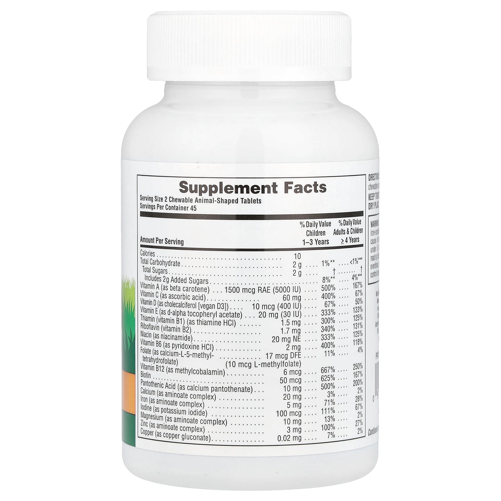 | Serving Size: 2 Chewable Animal-Shaped Tablets | |||