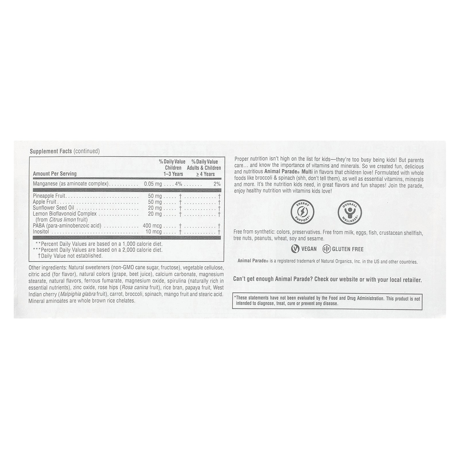 Proper nutrition isn't high on the list for kids-they're too busy being kids! But parents care...and know the importance of vitamins and minerals. So we created fun, delicious and nutritious Animal Parade® Multi in flavors that children love! Formulated with whole foods like broccoli & spinach (shh, don't tell them), as well as essential vitamins, minerals and more. It's the nutrition kids need, in great flavors and fun shapes! Join the parade, enjoy healthy nutrition with vitamins kids love!