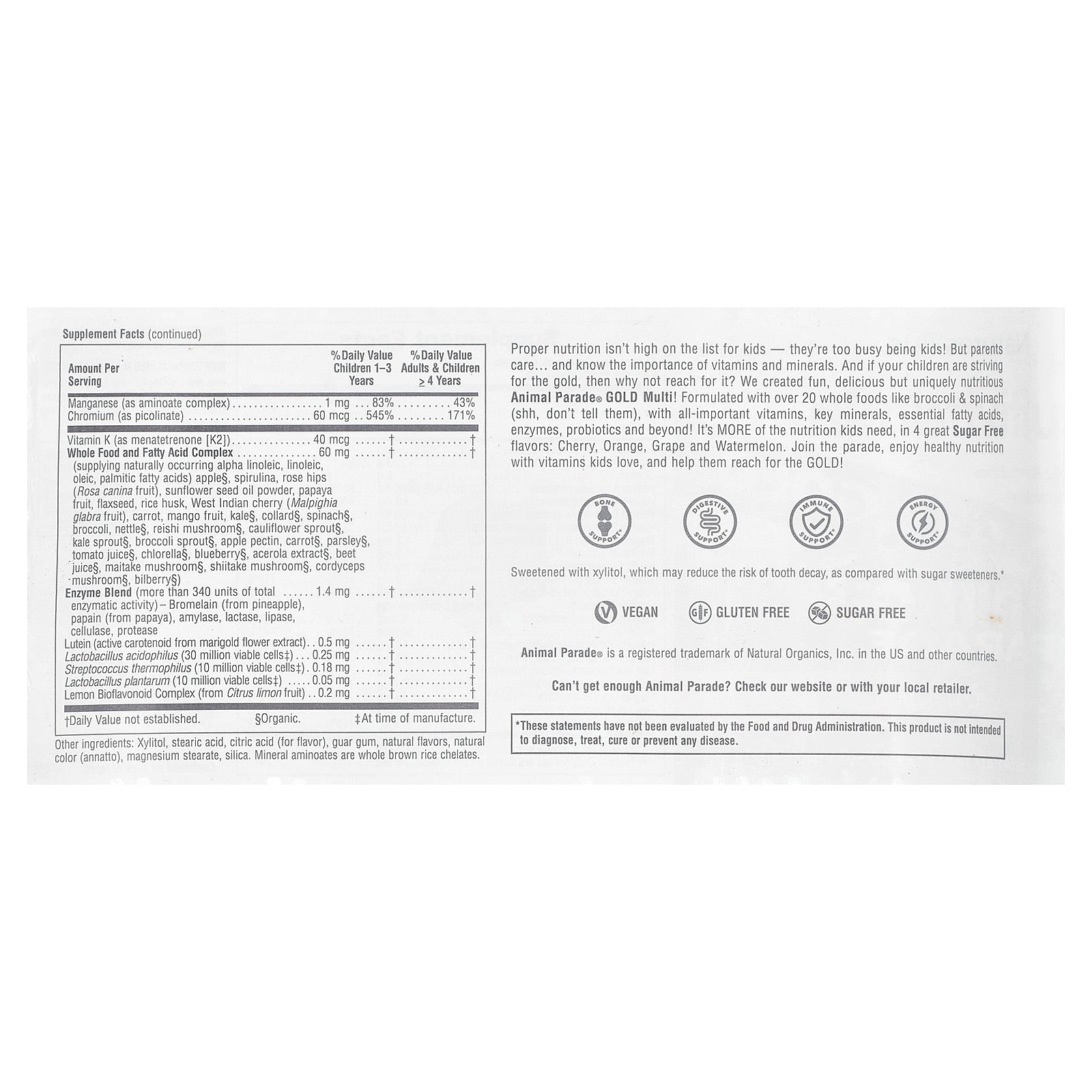 Proper nutrition isn't high on the list for kids-they're too busy being kids! But parents care... and know the importance of vitamins and minerals. And if your children are striving for the gold, then why not reach for it? We created fun, delicious but uniquely nutritious Animal Parade® Multi GOLD! Formulated with over 20 whole foods like broccoli & spinach (shh, don't tell them), with all important vitamins, the key minerals, essential fatty acids, enzymes, probiotics and beyond! It's MORE of the nutrition kids need, in 4 great Sugar Free flavors: Cherry, Orange, Grape and Watermelon. Join the parade, enjoy healthy nutrition with vitamins kids love, and help them reach for the GOLD!