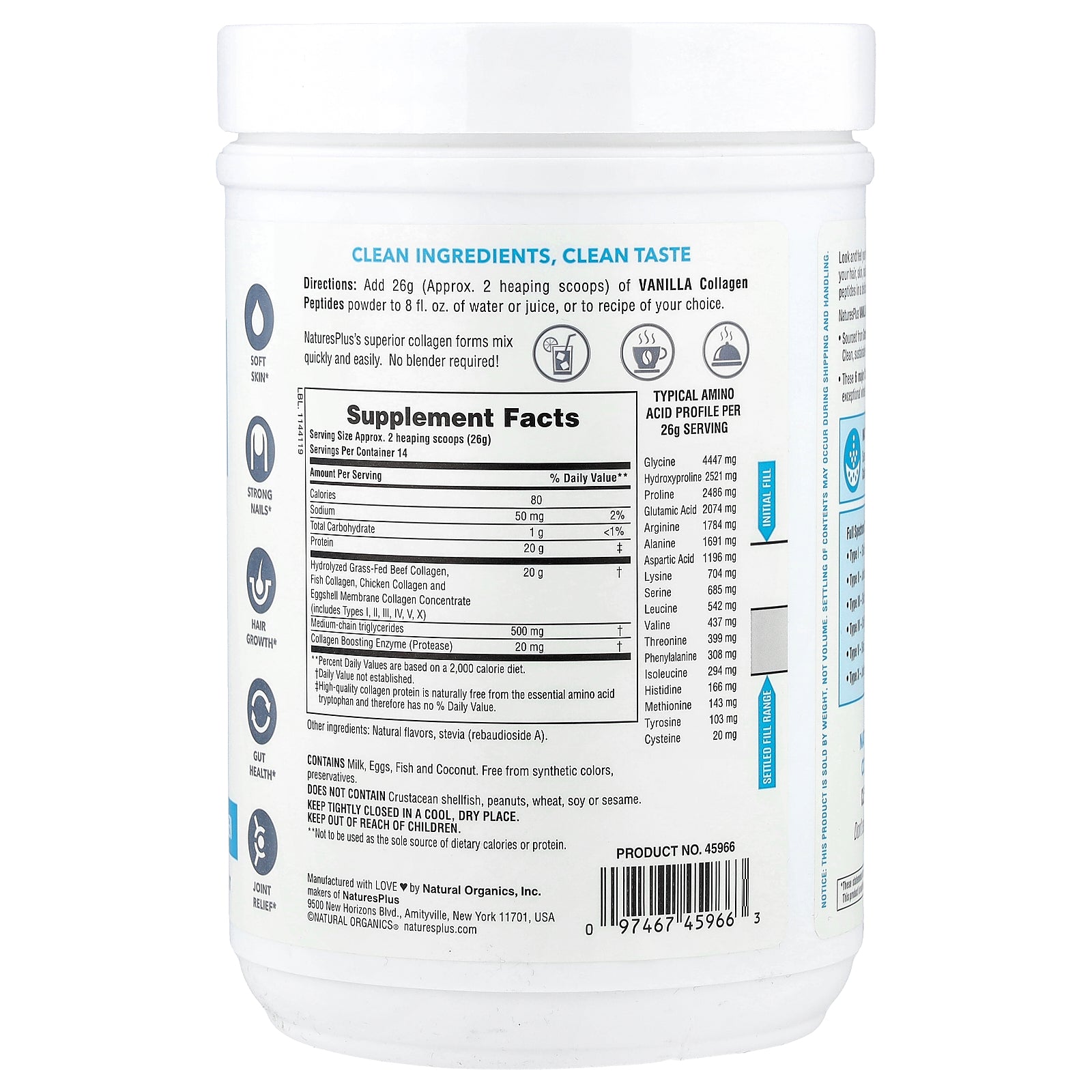Look and feel your best with Natures Plus VANILLA Collagen Peptides. Promote the health of your hair, skin, nails, joints, immune system and much more with the power of collagen protein peptides in a delicious vanilla flavor you'll love!