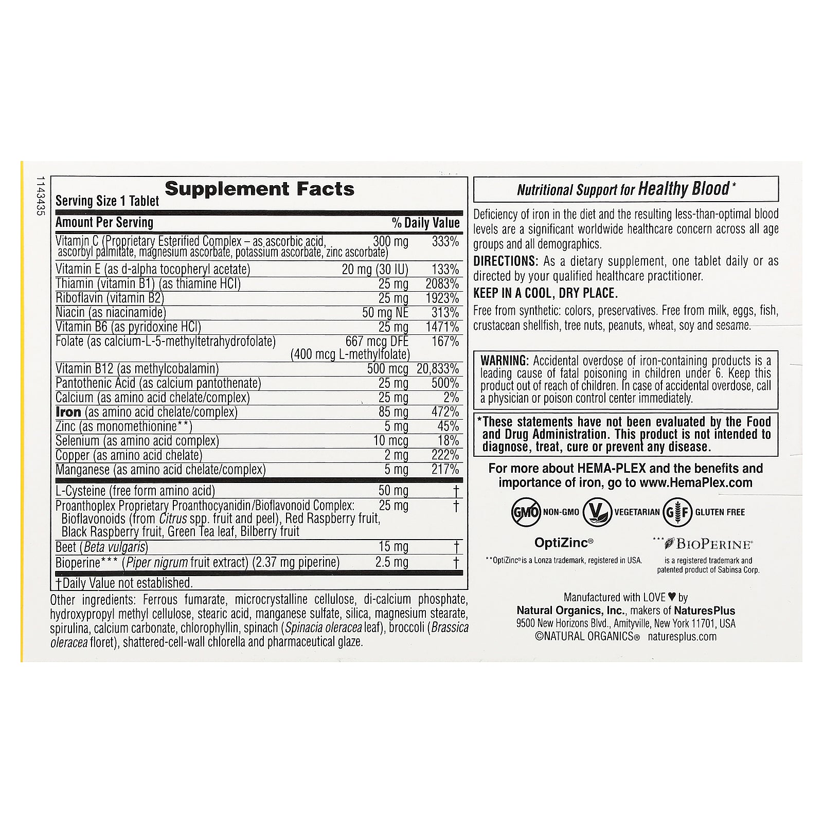 Ferrous fumarate, microcrystalline cellulose, di-calcium phosphate, hydroxypropyl methyl cellulose, stearic acid, manganese sulfate, silica, magnesium stearate, spirulina, calcium carbonate, chlorophyllin, spinach (spinacia oleracea leaf), broccoli (brassica oleracea floret), shattered-cell-wall chlorella and pharmaceutical glaze.