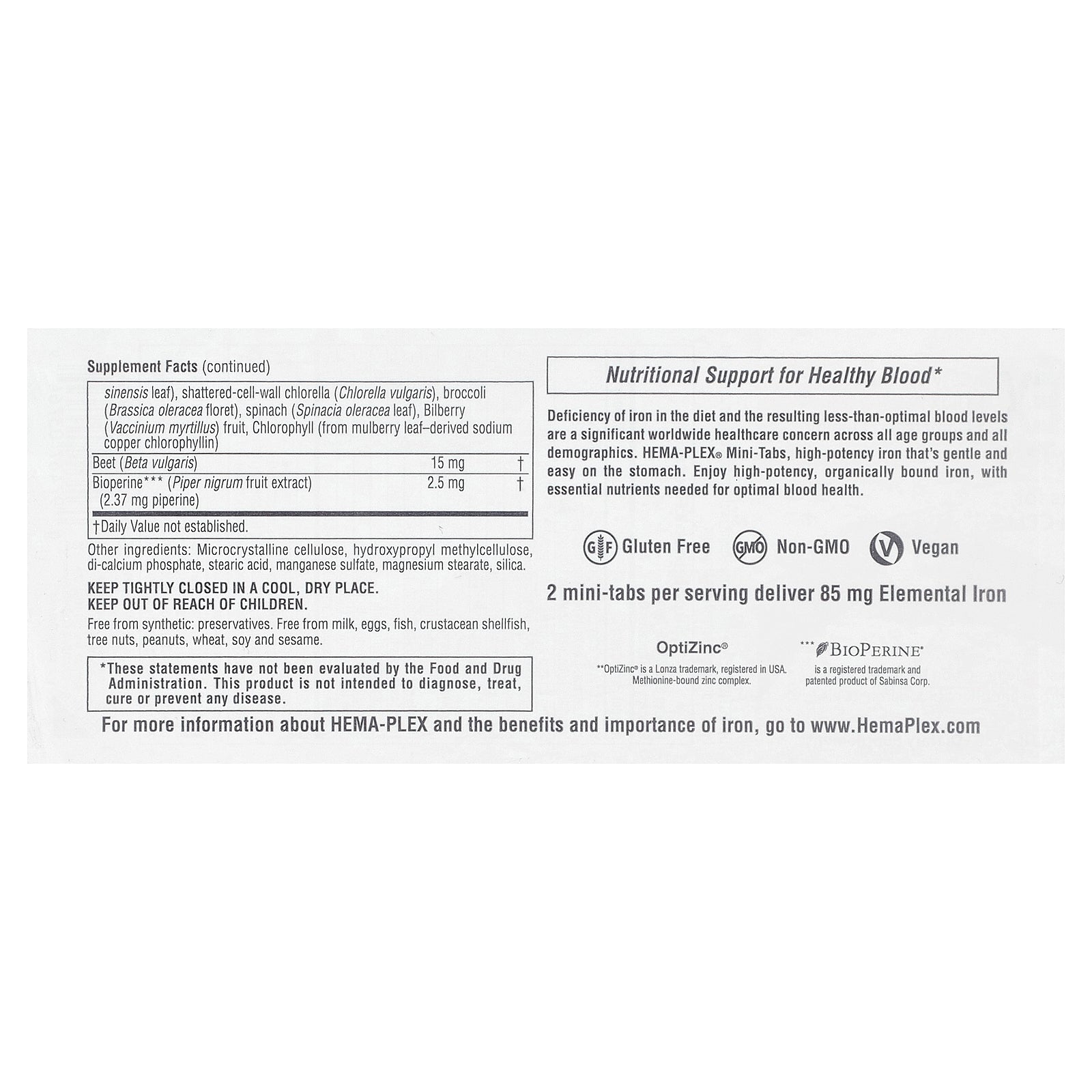 Deficiency of iron in the diet and the resulting less-than-optimal blood levels are a significant worldwide healthcare concern across all age groups and all demographics. Hema-Plex® Mini-Tabs, high-potency iron that's gentle and easy on the stomach. Enjoy high-potency, organically bound iron, with essential nutrients needed for optimal blood health.