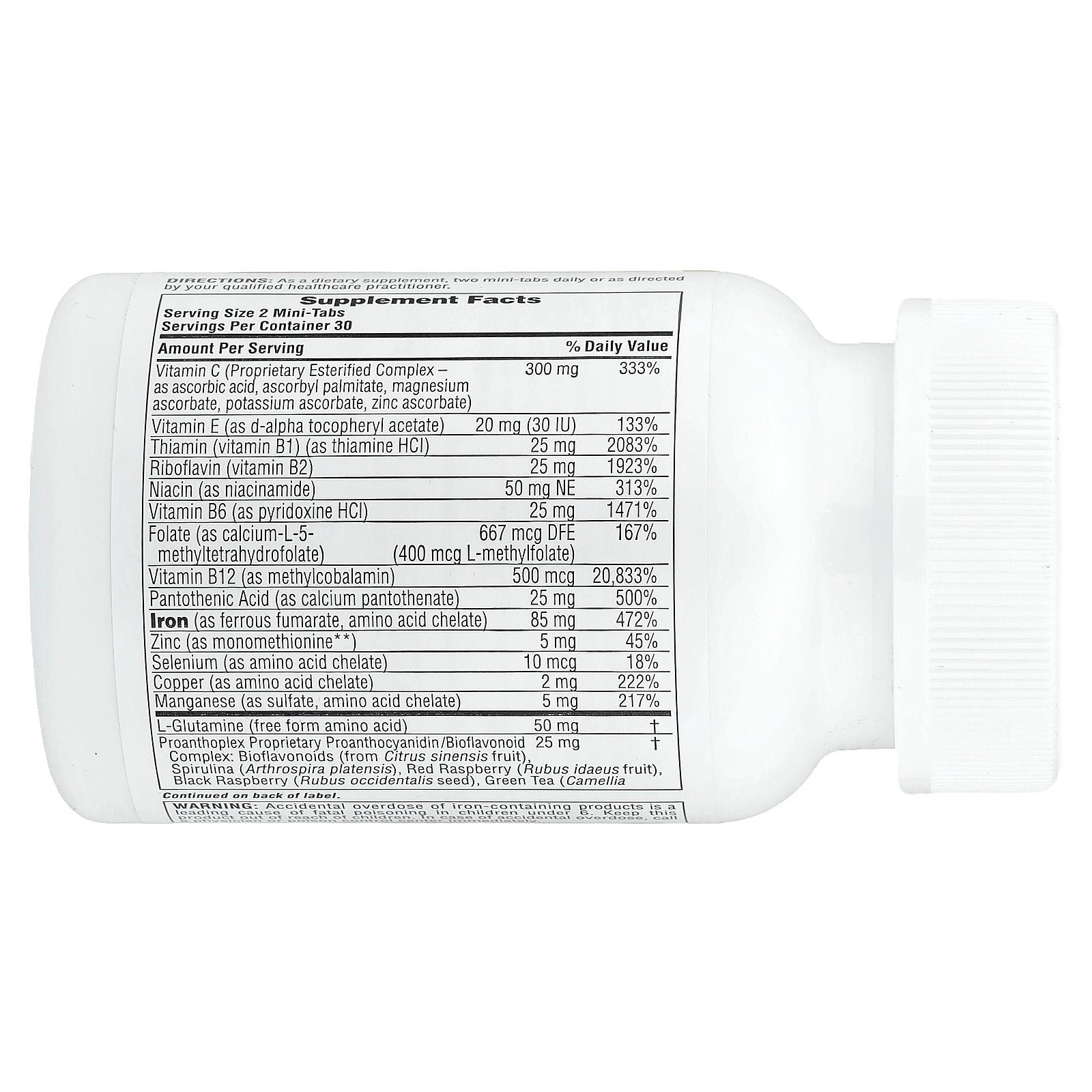 2 mini-tabs per serving deliver 85 mg Elemental Iron.