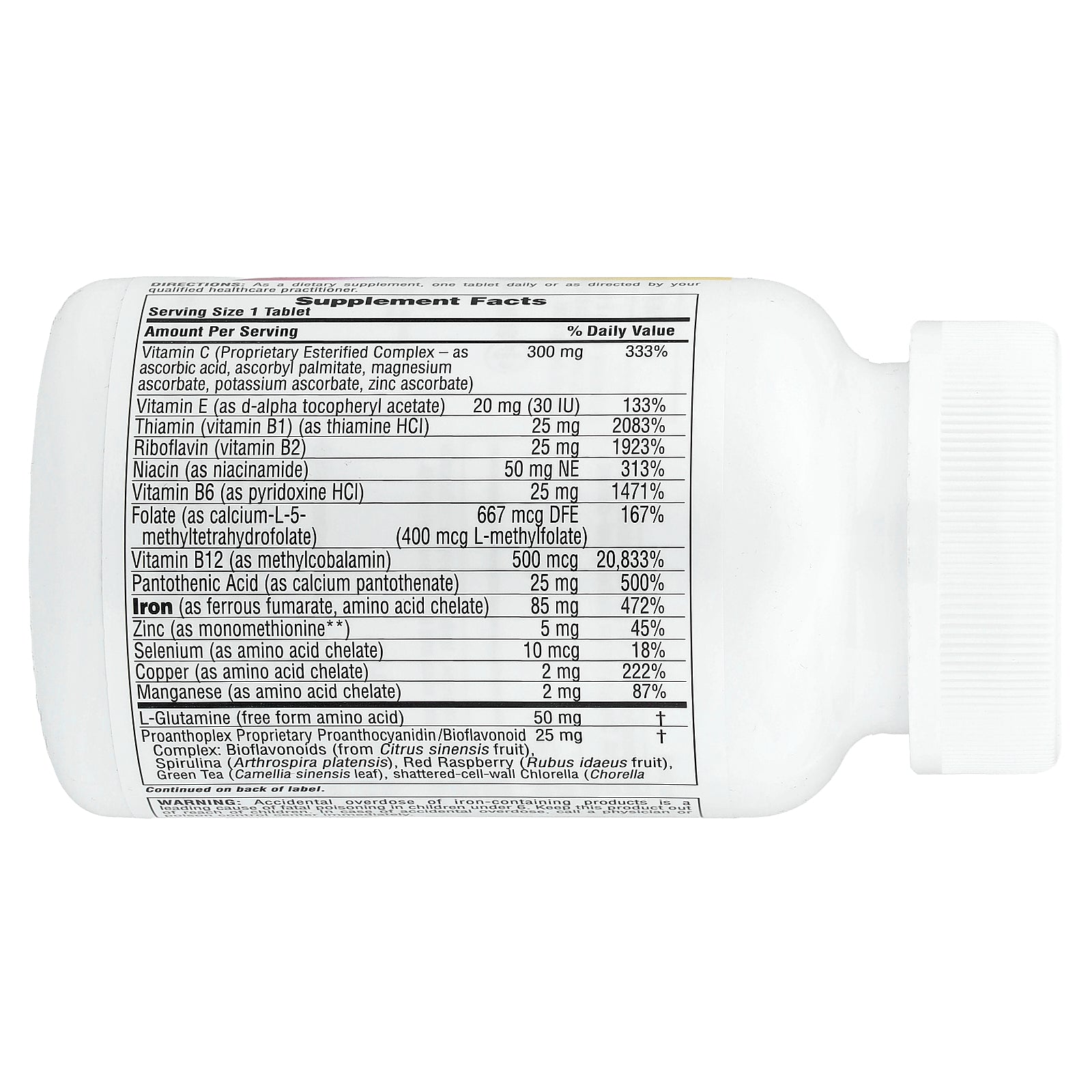 Ferrous fumarate, microcrystalline cellulose, di-calcium phosphate, hydroxypropyl methyl cellulose, stearic acid, manganese sulfate, silica, magnesium stearate, spirulina, calcium carbonate, chlorophyll, spinach (Spinacia oleracea leaf), broccoli (Brassica oleracea floret), shattered-cell-wall chlorella and pharmaceutical glaze.