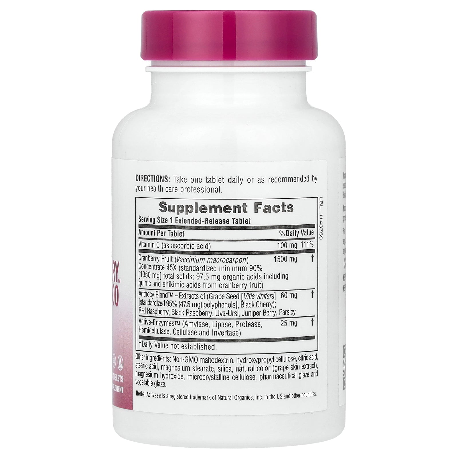 NaturesPlus® Herbal Actives Ultra Cranberry™ 1500 is a standardized cranberry fruit concentrate supported by our Anthocy Blend™ and Active-Enzymes™ in an extended-release tablet.