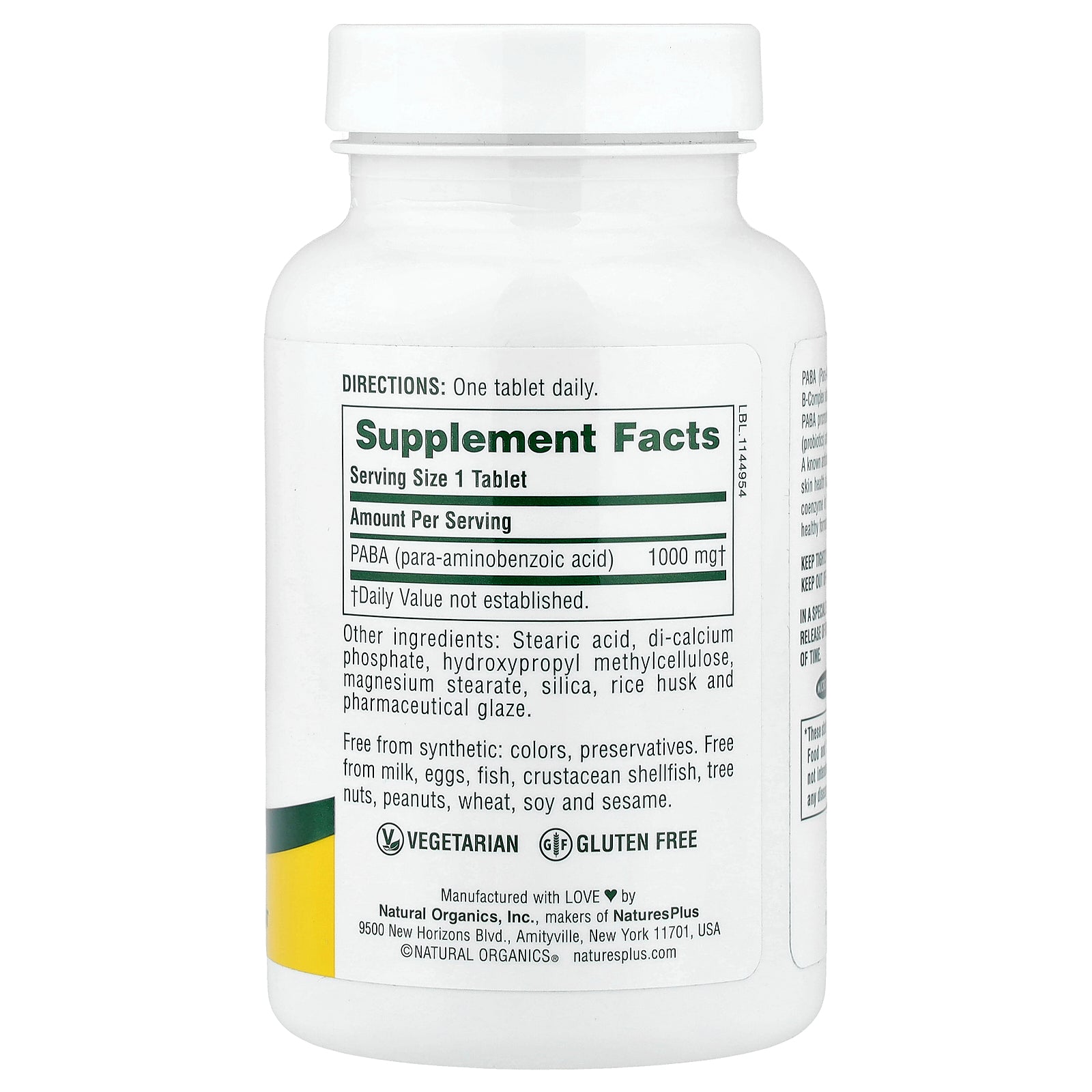 PABA (Para-Aminobenzoic Acid) is closely related to B-Complex vitamins, although PABA is not itself a vitamin. PABA promotes production of folate by intestinal flora (probiotics) and assists in assimilation of pantothenic acid. A known antioxidant, PABA supports the ability to maintain skin health in ultraviolet sunlight. PABA also acts as a coenzyme in the utilization of protein, and promotes healthy formation of red blood cells.