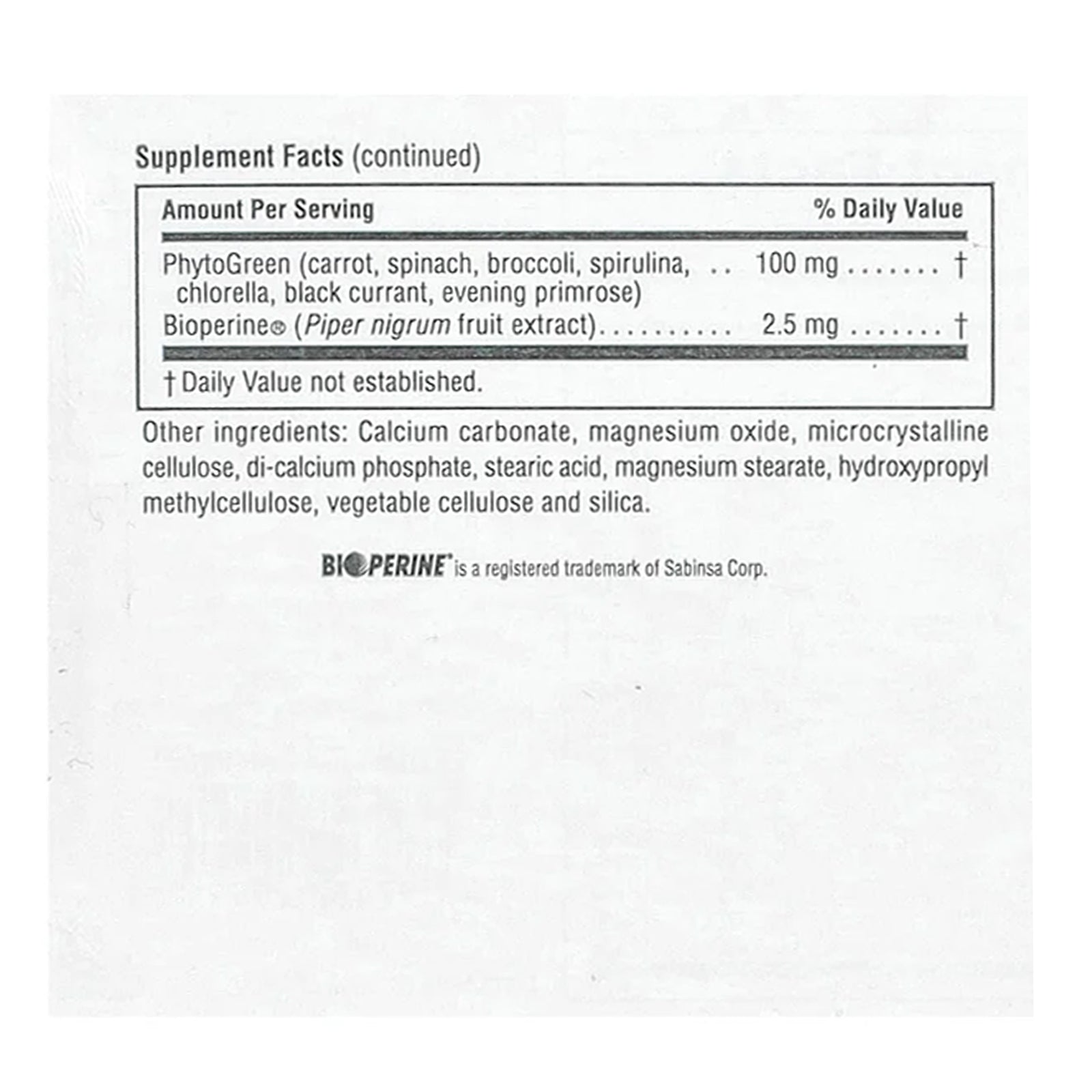| PhytoGreen (carrot, spinach, broccoli, spirulina, chlorella, black currant, evening primrose) | 100 mg | † |