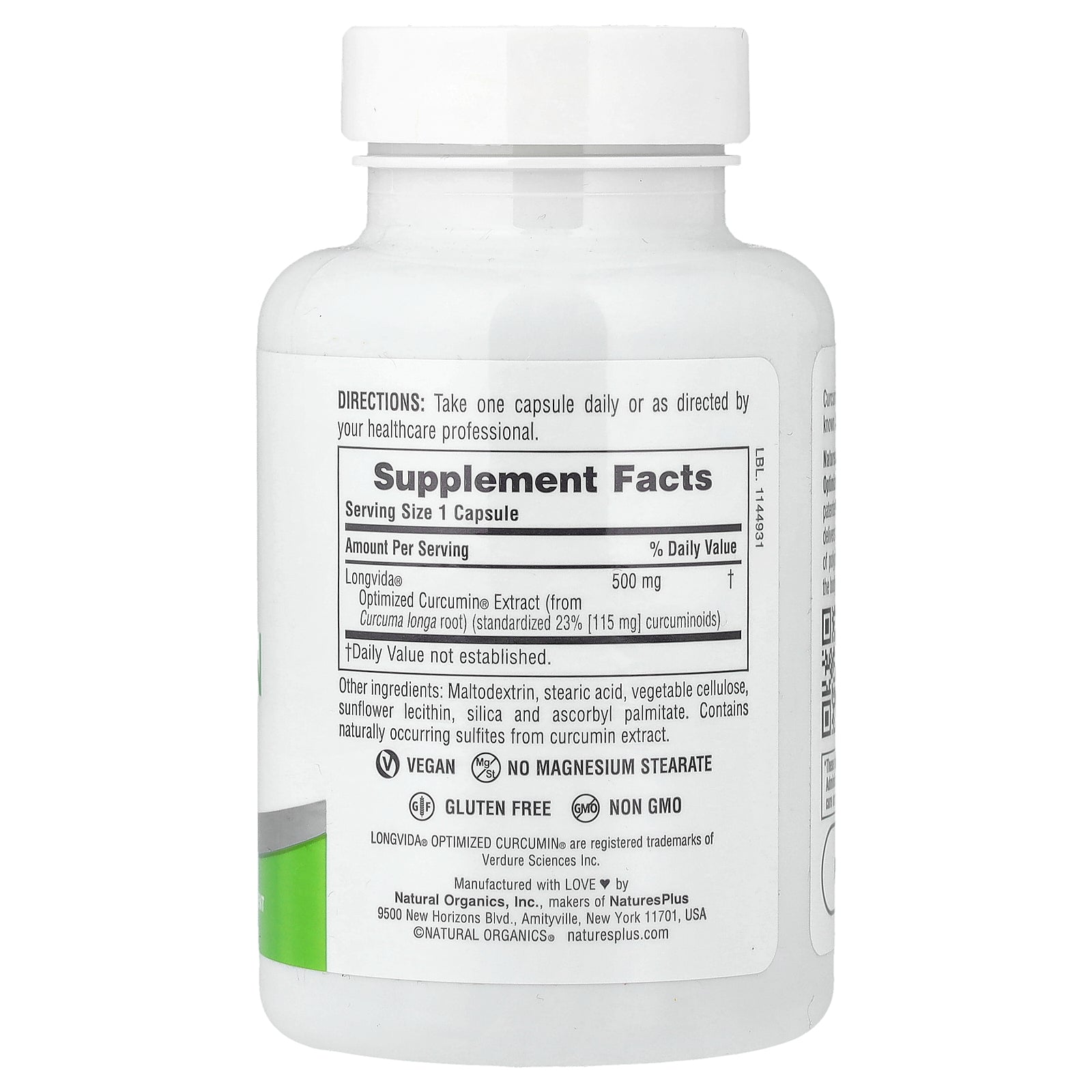 NaturesPlus® Curcumin 500, featuring Longvida® Optimized Curcumin®, provides superior absorption. Its patented Solid Lipid Curcumin Particle (SLCP™) technology delivers more antioxidant activity by increasing the amount of polyphenols as well as the enzymatic antioxidants that the body naturally produces.