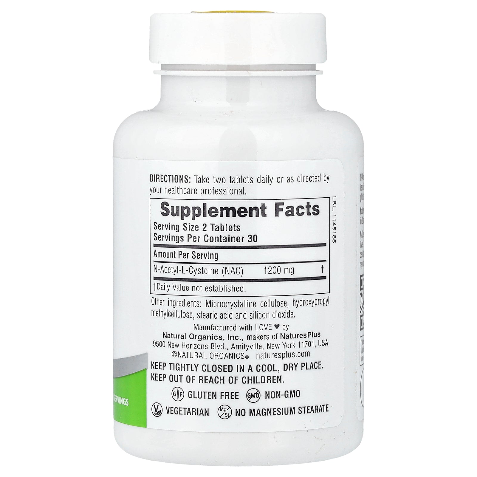 NaturesPlus NAC 1200 delivers a powerful daily concentration in 2 small, easy-to-swallow tablets.