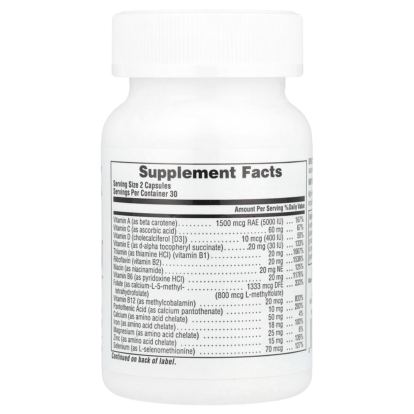 | Folate (as calcium-L-5-methyltetrahydrofolate) | 1333 mcg (800 mcg L-methylfolate) | 333% |