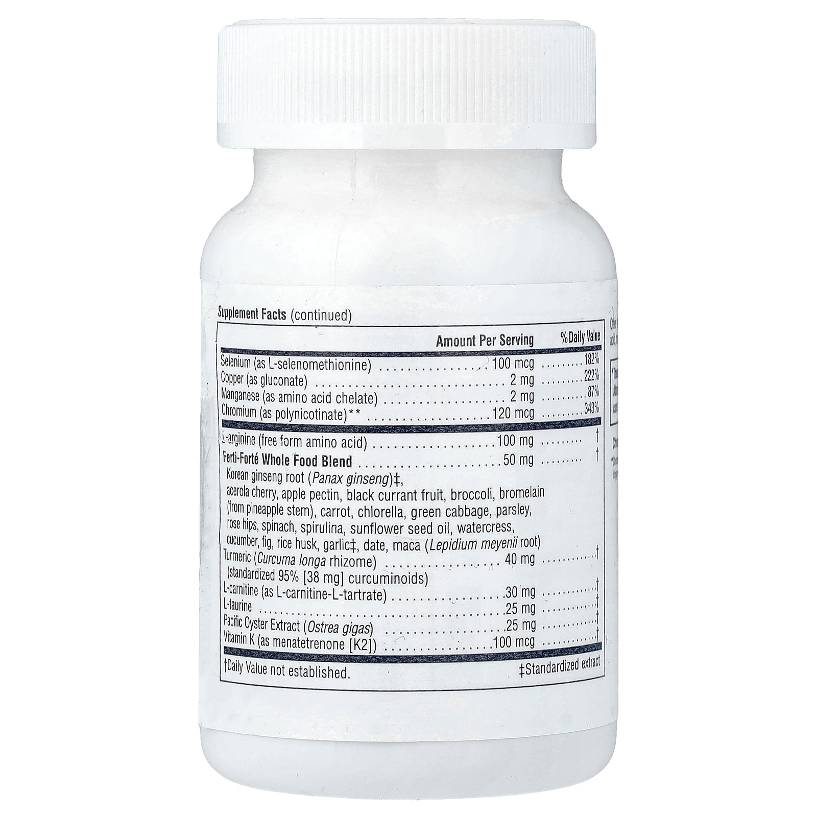 | Ferti-Forte Whole Food Blend Korean ginseng (Panax ginseng)‡, acerola cherry, apple pectin, black currant fruit, broccoli, bromelain (from pineapple fruit), carrot, chlorella, green cabbage, Icelandic kelp, parsley, rose hips, spinach, spirulina, sunflower seed oil, watercress, cucumber, fig, brown rice, garlic‡, date, maca (Lepidium meyenii root) |