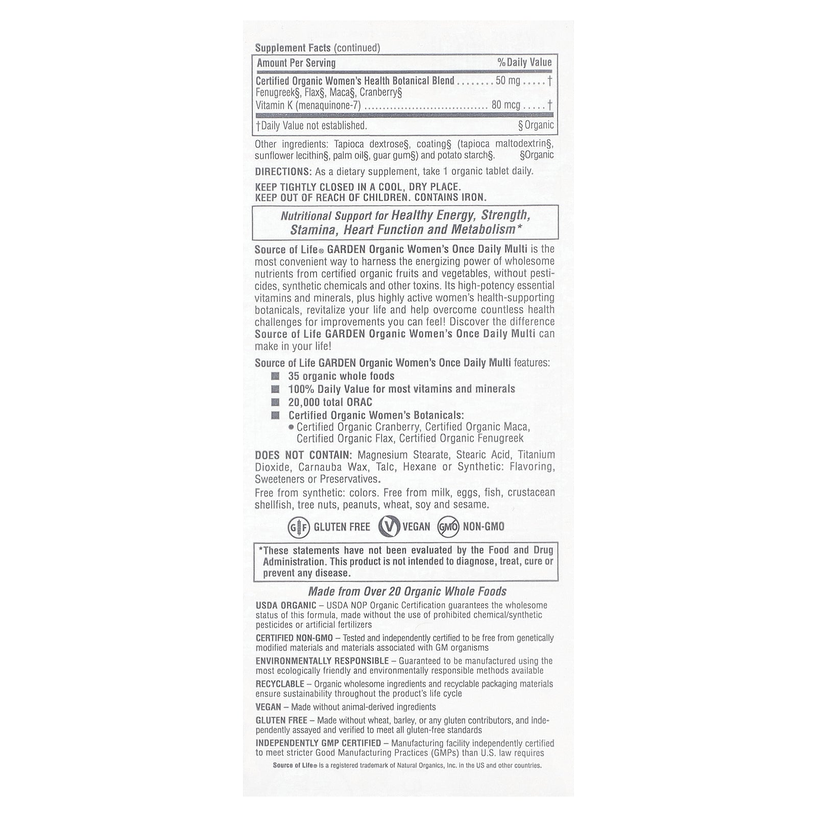 Source of Life Garden Organic Women's Once Daily Multi features: