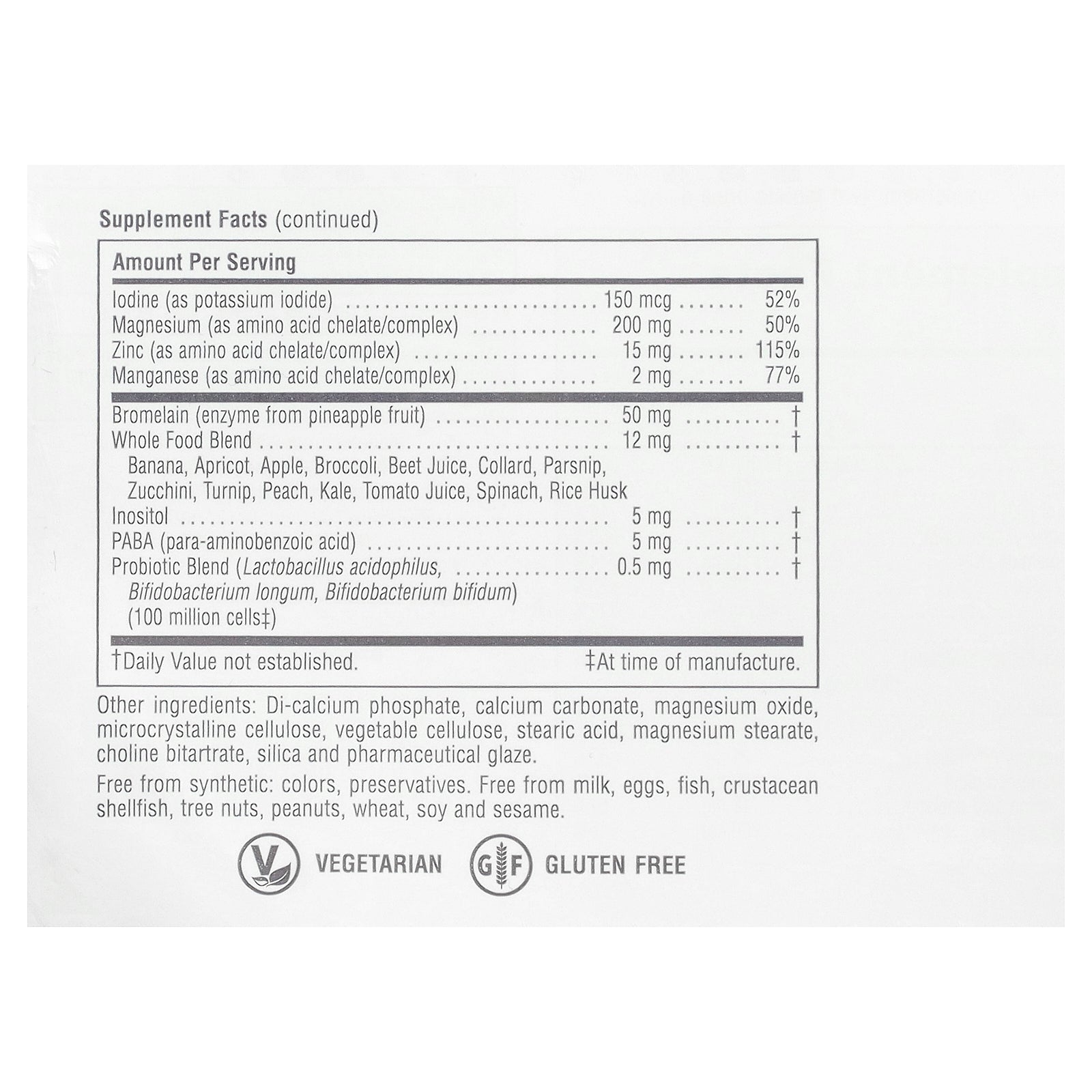 | Bromelain (enzyme from pineapple fruit) | 50 mg | † |