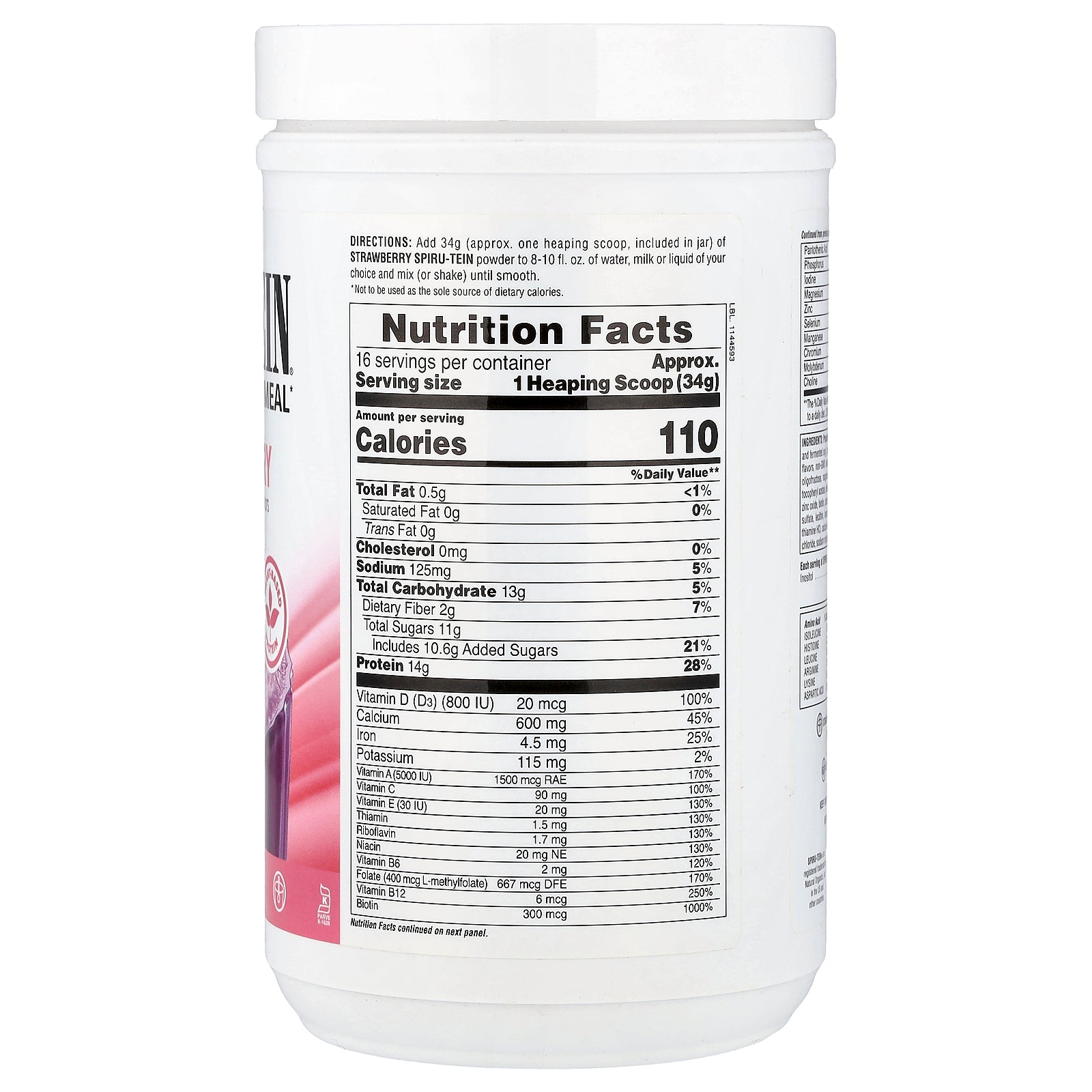 | Each serving of Spiru-Tein also contains: | |