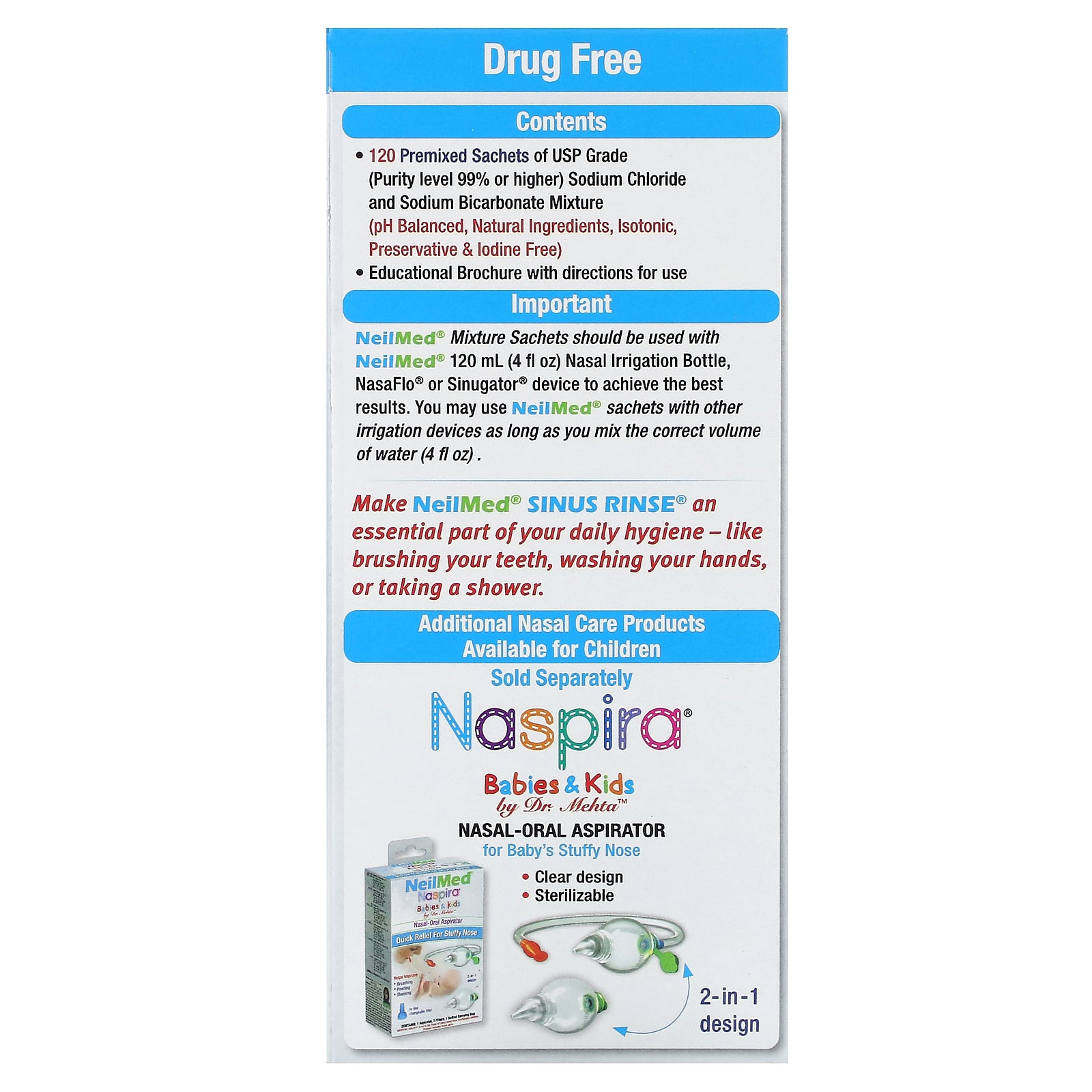 - 120 Premixed Sachets of USP Grade (Purity level 99% or higher) Sodium Chloride and Sodium Bicarbonate Mixture (pH Balanced, Natural Ingredients, Isotonic, Preservative & lodine Free)
