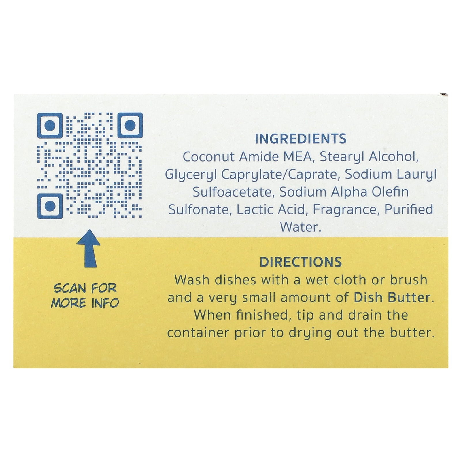 Wash dishes with a wet cloth or brush and a very small amount of Dish Butter. When finished, tip and drain the container prior to drying out the butter.