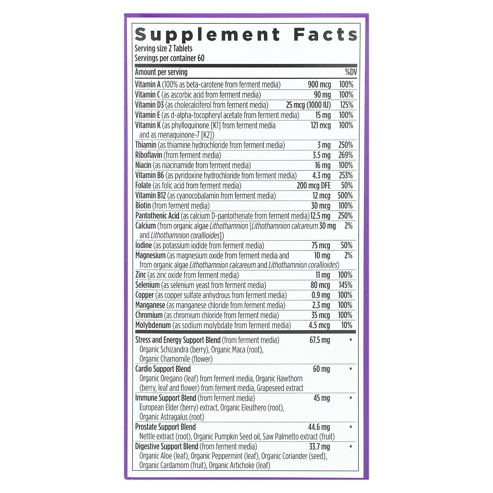 Complete support for men's overall health and system-specific benefits, with nutrients for brain, bone & prostate support, stress, vision & digestive support, and healthy hair, skin & nails, packed into just 2 tablets a day.