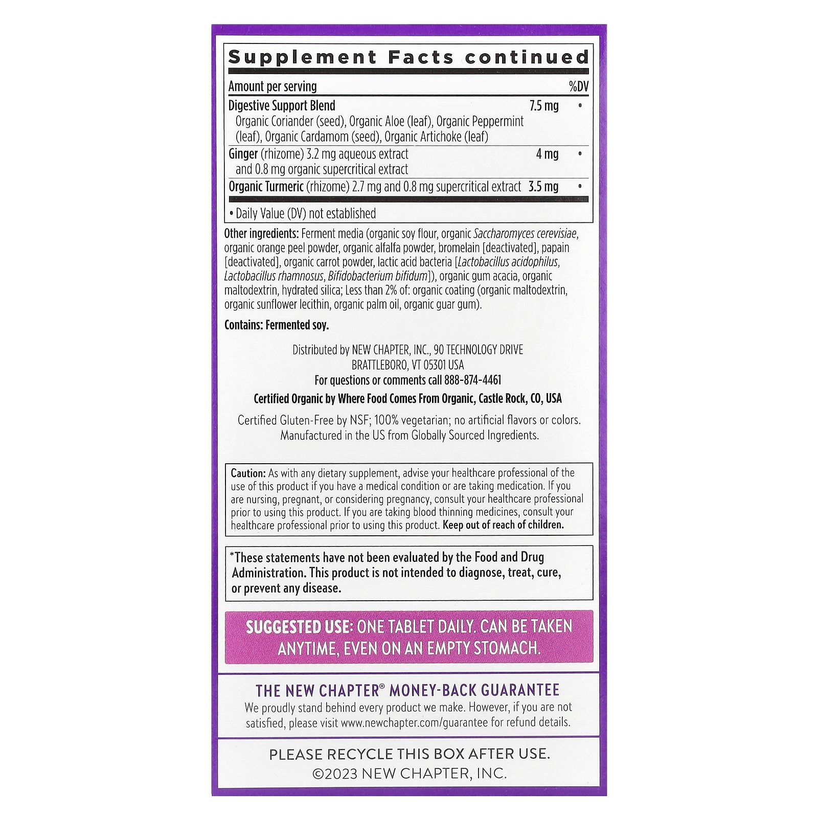 Ferment media (organic soy flour, organic Saccharomyces cerevisiae, organic orange peel powder, organic alfalfa powder, bromelain [deactivated], papain [deactivated], organic carrot powder, lactic acid bacteria [Lactobacillus acidophilus, Lactobacillus rhamnosus, Bifidobacterium bifidum]), organic gum acacia, organic maltodextrin, hydrated silica; Less than 2% of: organic coating (organic maltodextrin, organic sunflower lecithin, organic palm oil, organic guar gum).