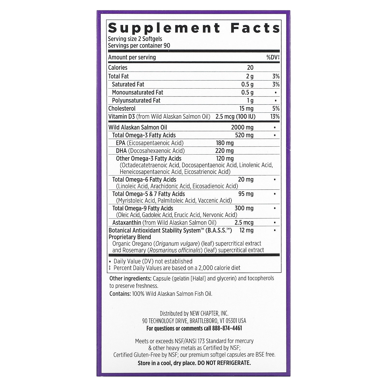 | Vitamin D3 (from Wild Alaskan Salmon Oil) | 2.5 mcg (100 IU) | 13% |