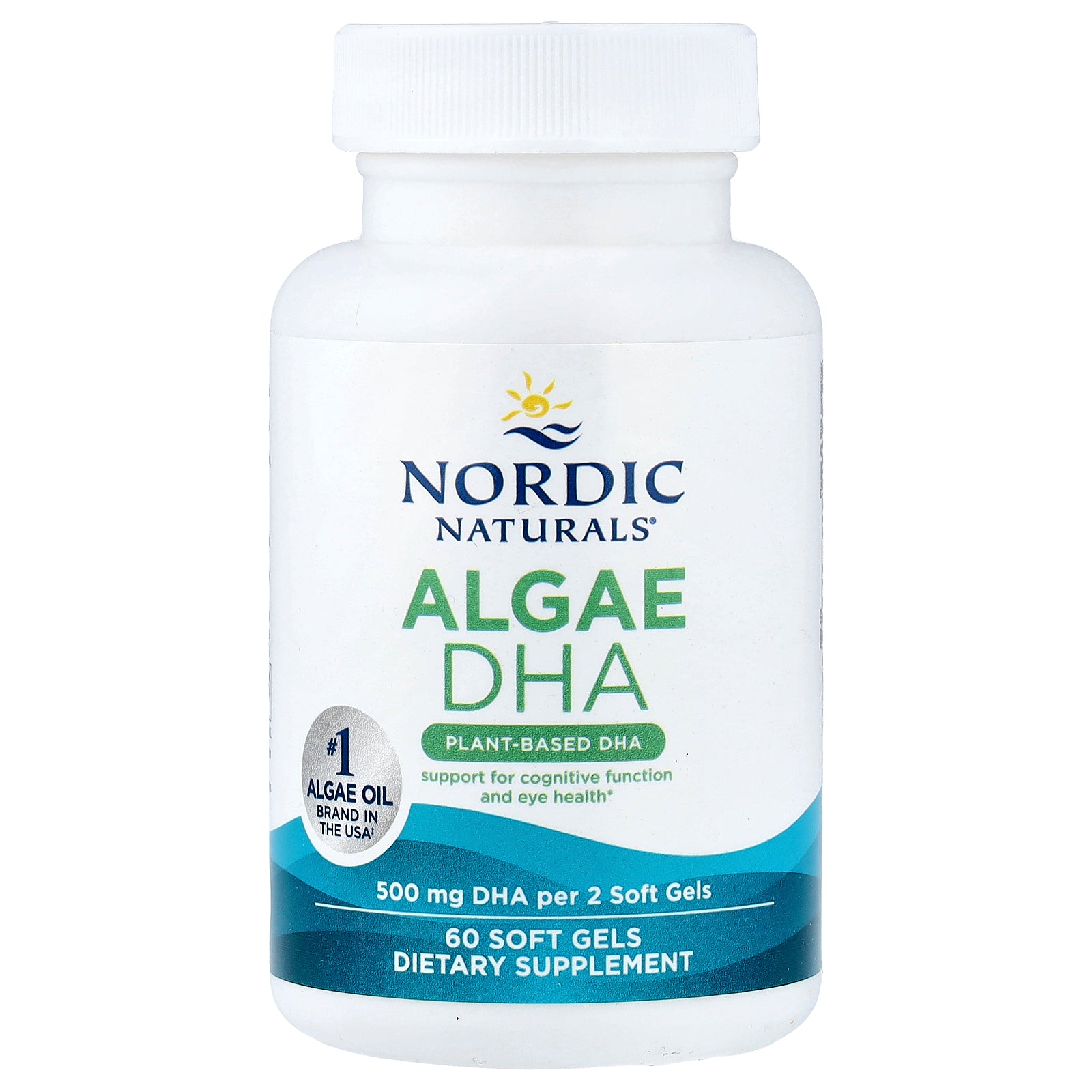 Algae DHA offers a sustainable, vegan source of the omega-3 fatty acid DHA, providing 500 mg in two plant-based soft gels. Our algae oil is derived from Schizochytrium sp ., a unique unicellular marine microalga that produces DHA. The health benefits of DHA are extensively documented. Research shows it supports brain health, cognitive function, and normal eye health.