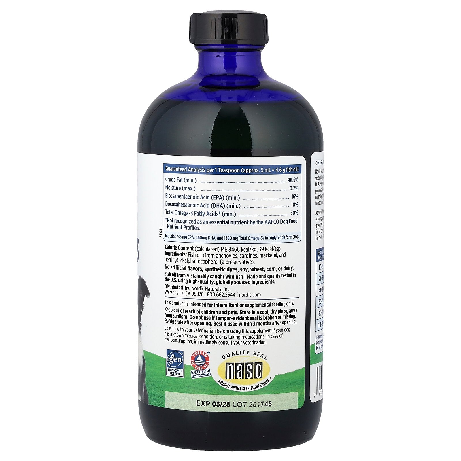 | *Not recognized as an essential nutrient by the AAFCO Dog Food Nutrient Profiles. Includes 736 mg EPA, 460 mg DHA, and 1380 mg Total Omega-3s in triglyceride form (TG). | |