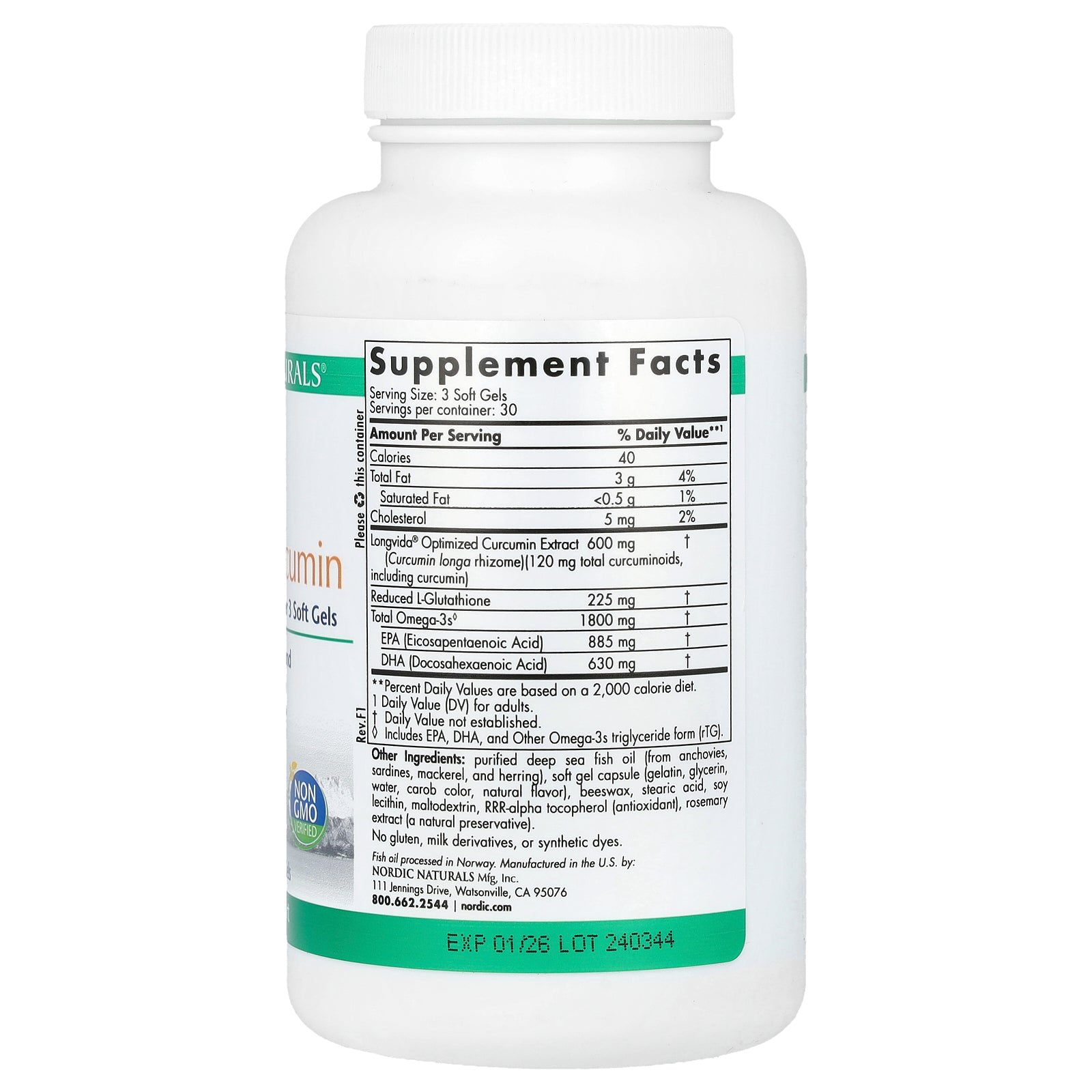 - 885 mg EPA / 630 mg DHA as rTG per 3 Soft Gels