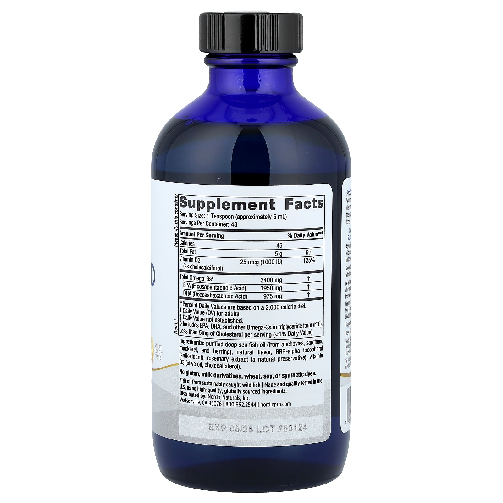 - 1950 mg EPA, 975 mg DHA, 1000 IU Vitamin D3 Per Teaspoon
