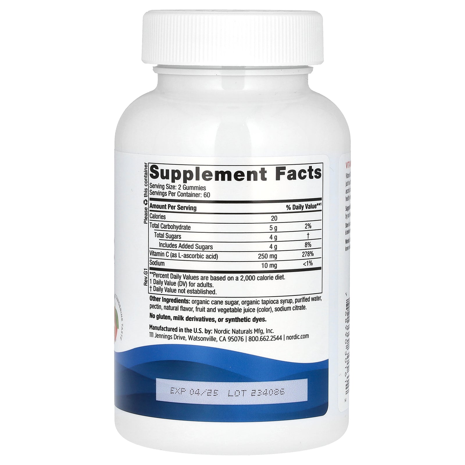 Vitamin C Gummies provide over a day's worth of essential vitamin C in just two, tasty tangerine gummies. Containing 250 mg of vitamin C as ascorbic acid per serving, these gummies provide bioavailable support for healthy immune cells and immune functions.
